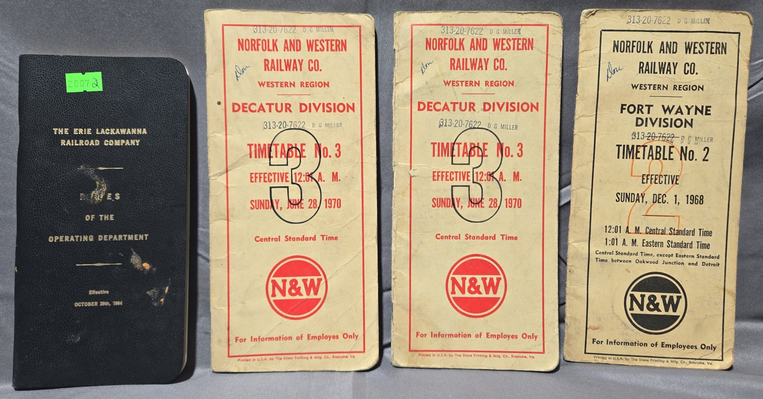 2007 (1) The Erie Lackawanna Railroad Company Rules of The Operating Dept. Booklet, (2) Norfolk and Western Railway Co. Decatur Division Timetable Booklets, (1) Norfolk and Western Railway FT. Wayne Division Timetable Booklet