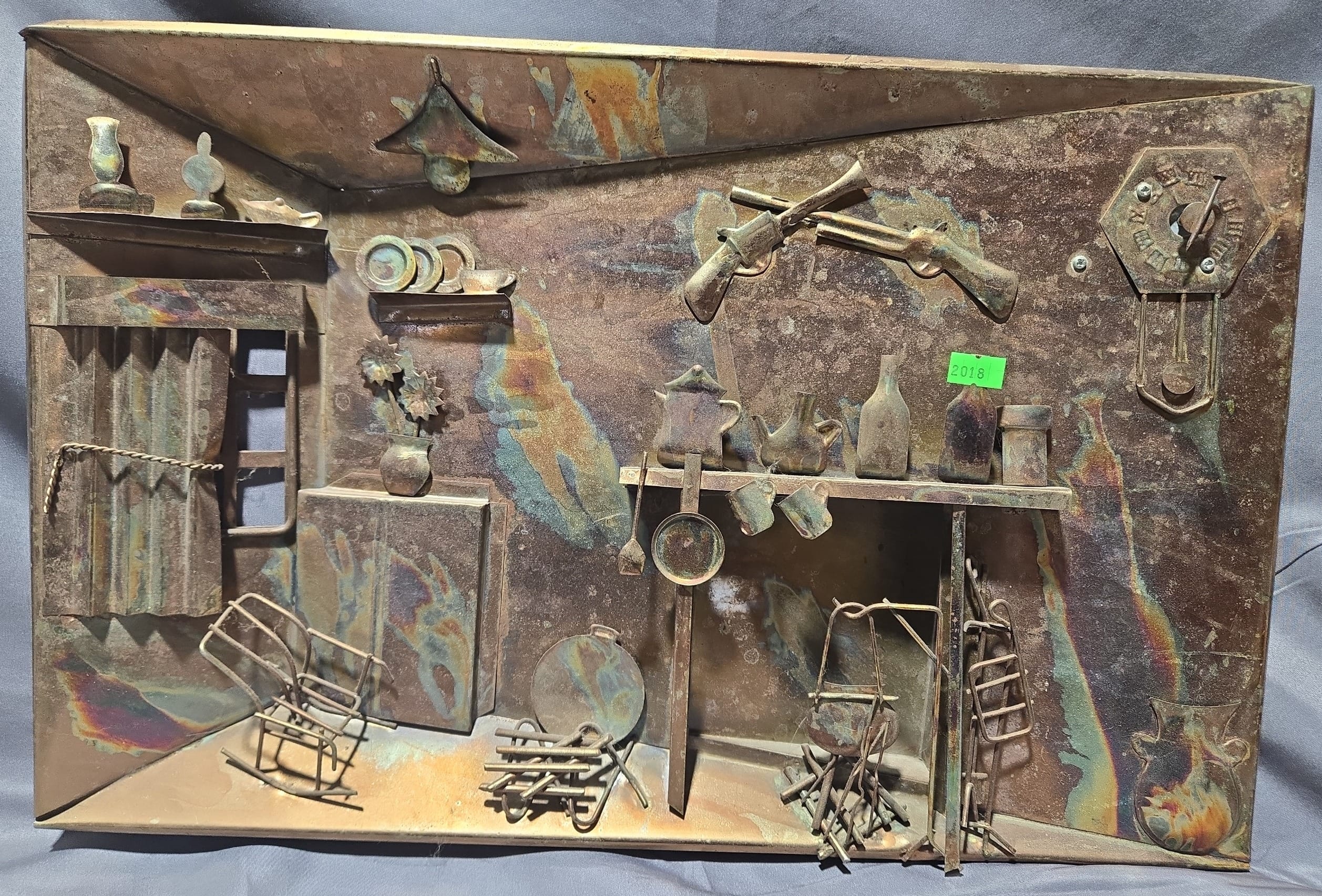 2018 3D Cabin Room w/ music Box Metal Copper Enesco Wall Art 20" x 13"