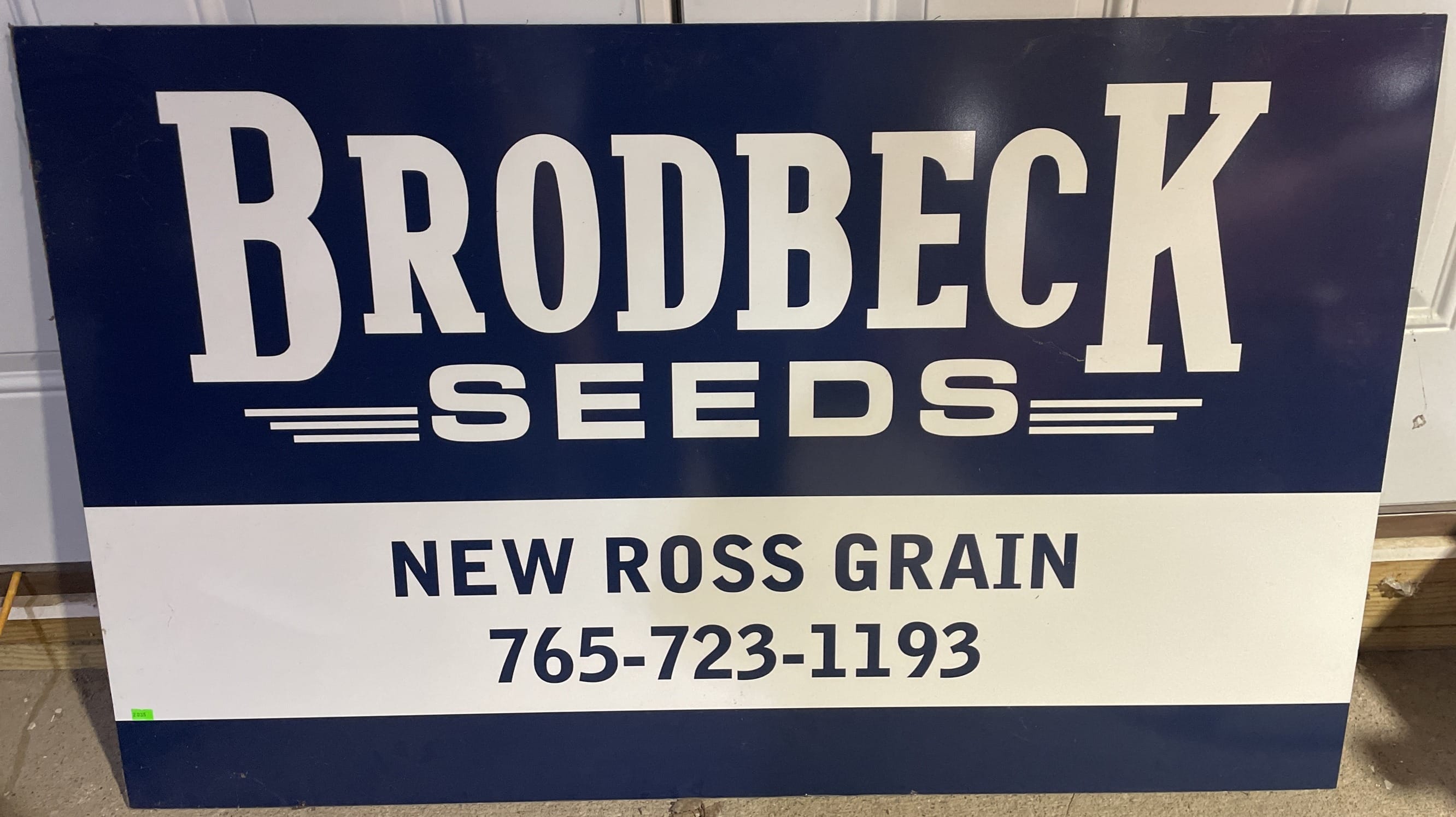 2035 Brodbeck Seeds Double-Sided Sign, New Ross Grain, possibly foamcore material? 28”x30”