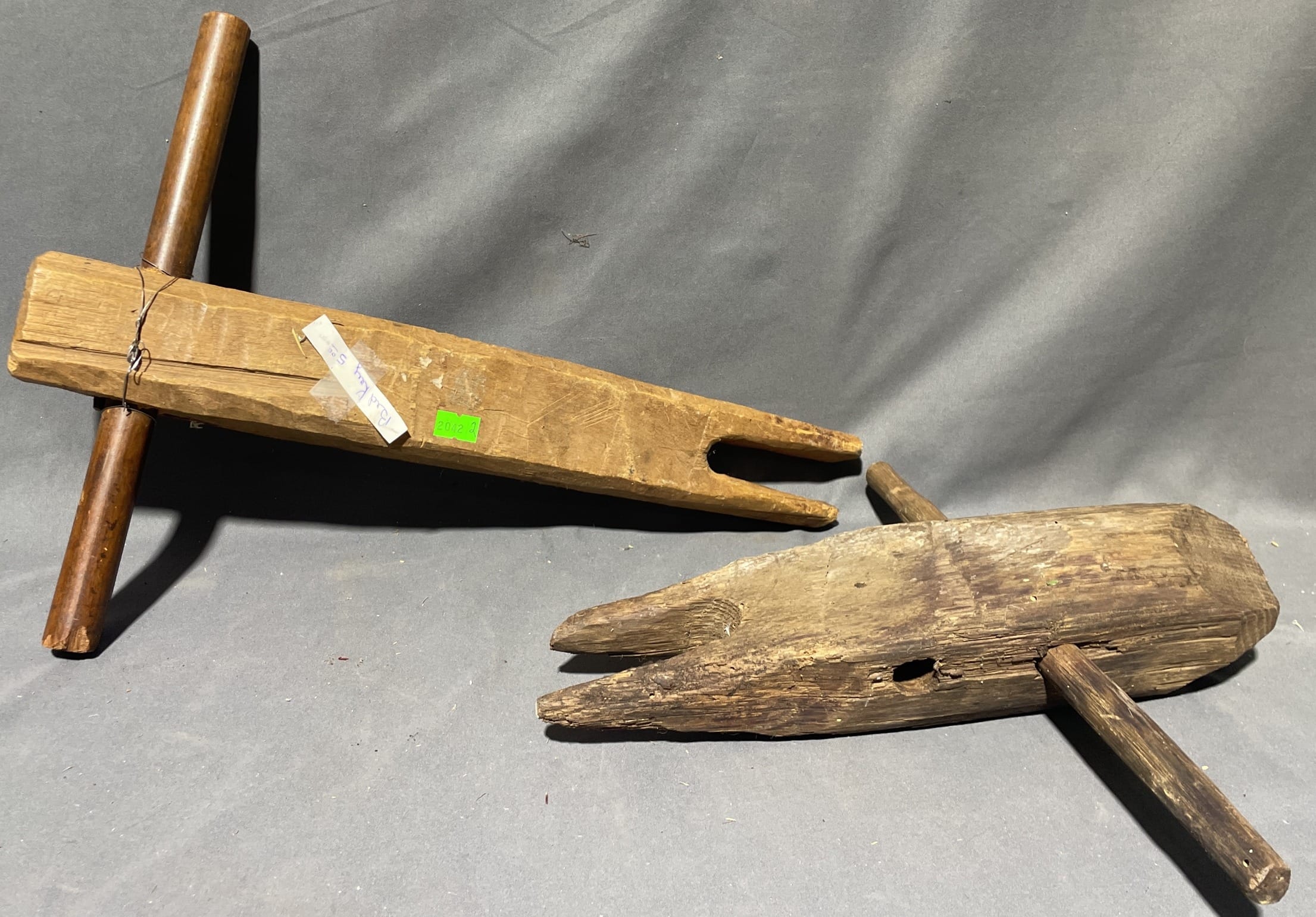 2067 Primitive Old Wood Flail Farm Threshing Grain Tool Americana 5ft