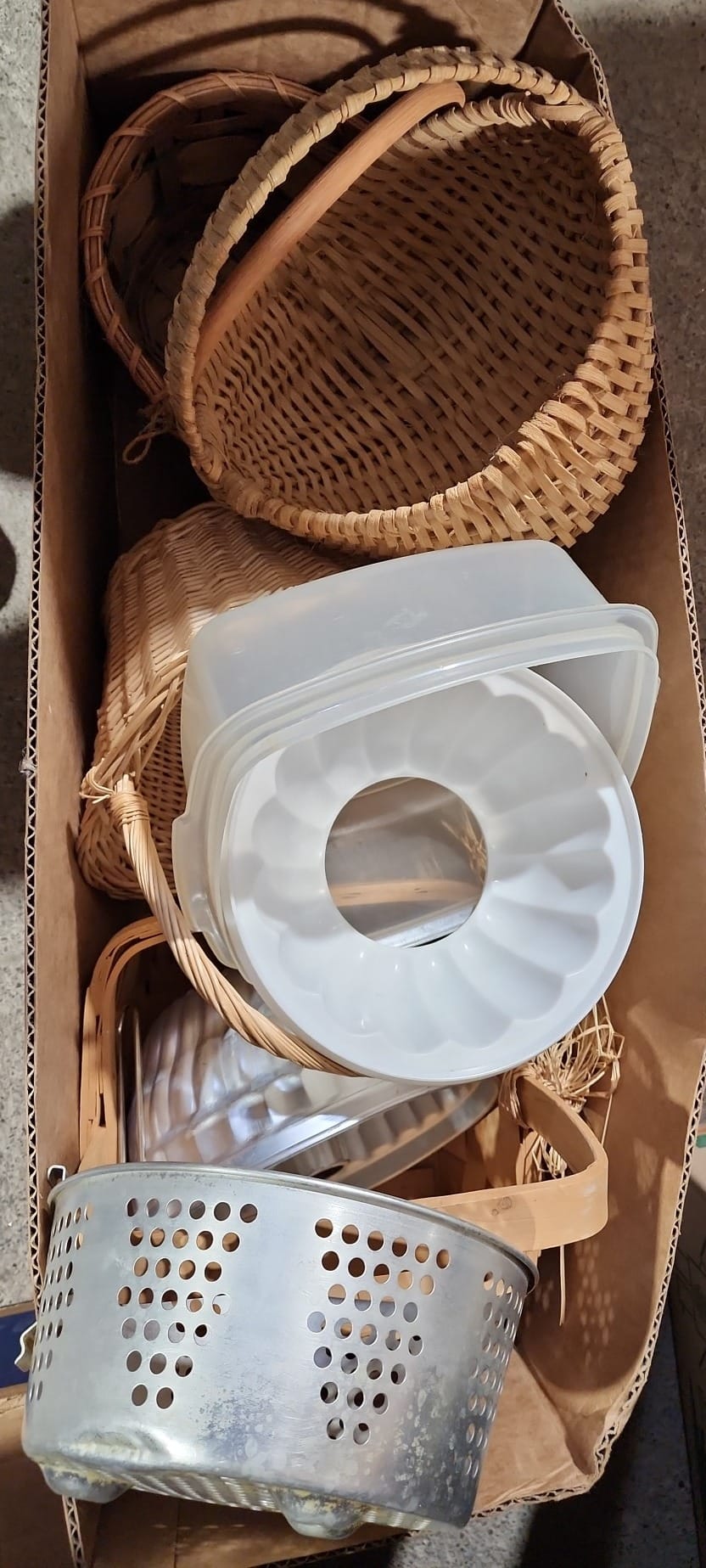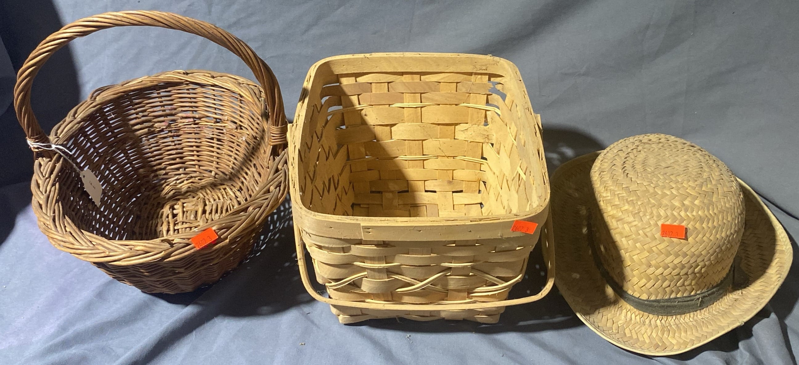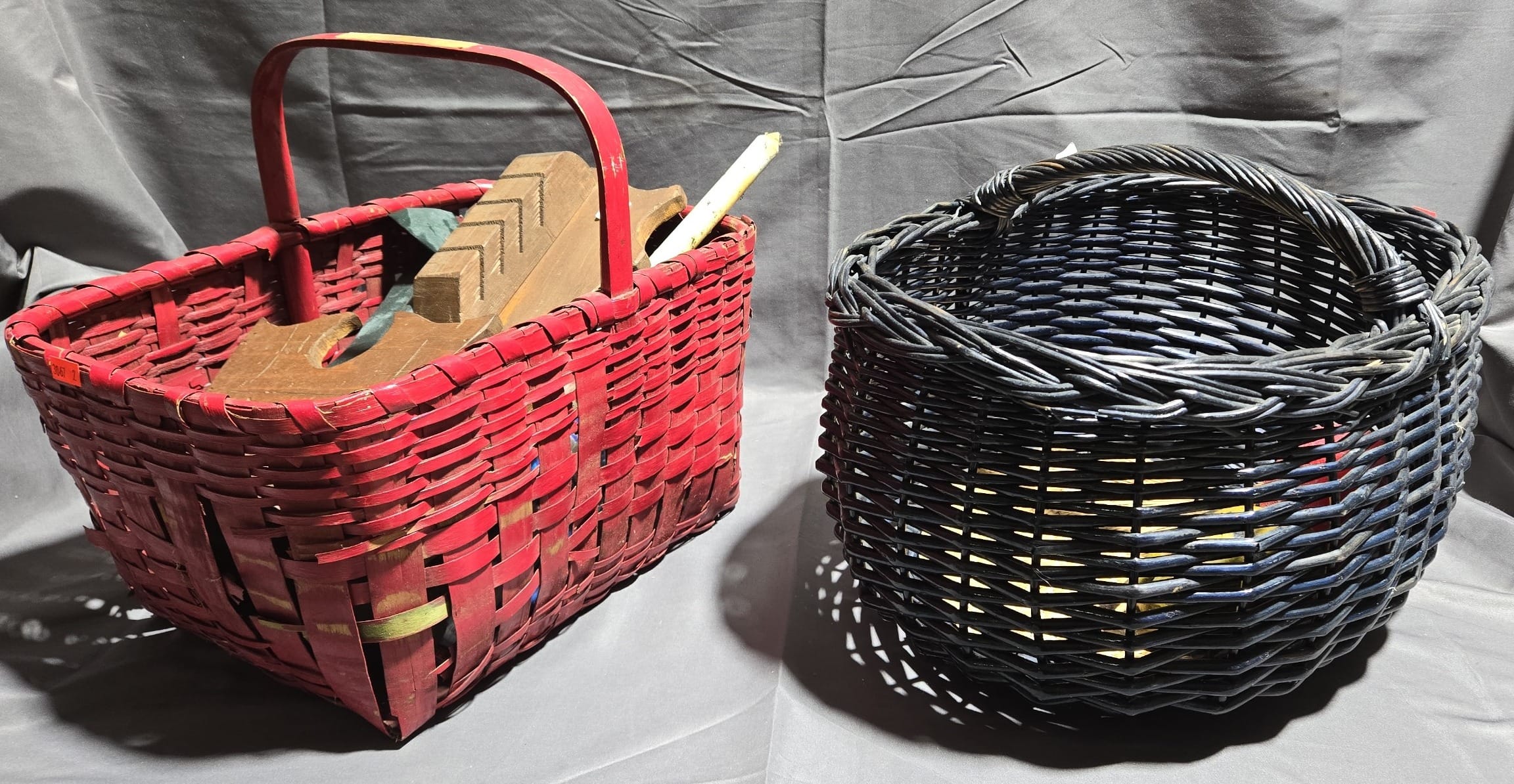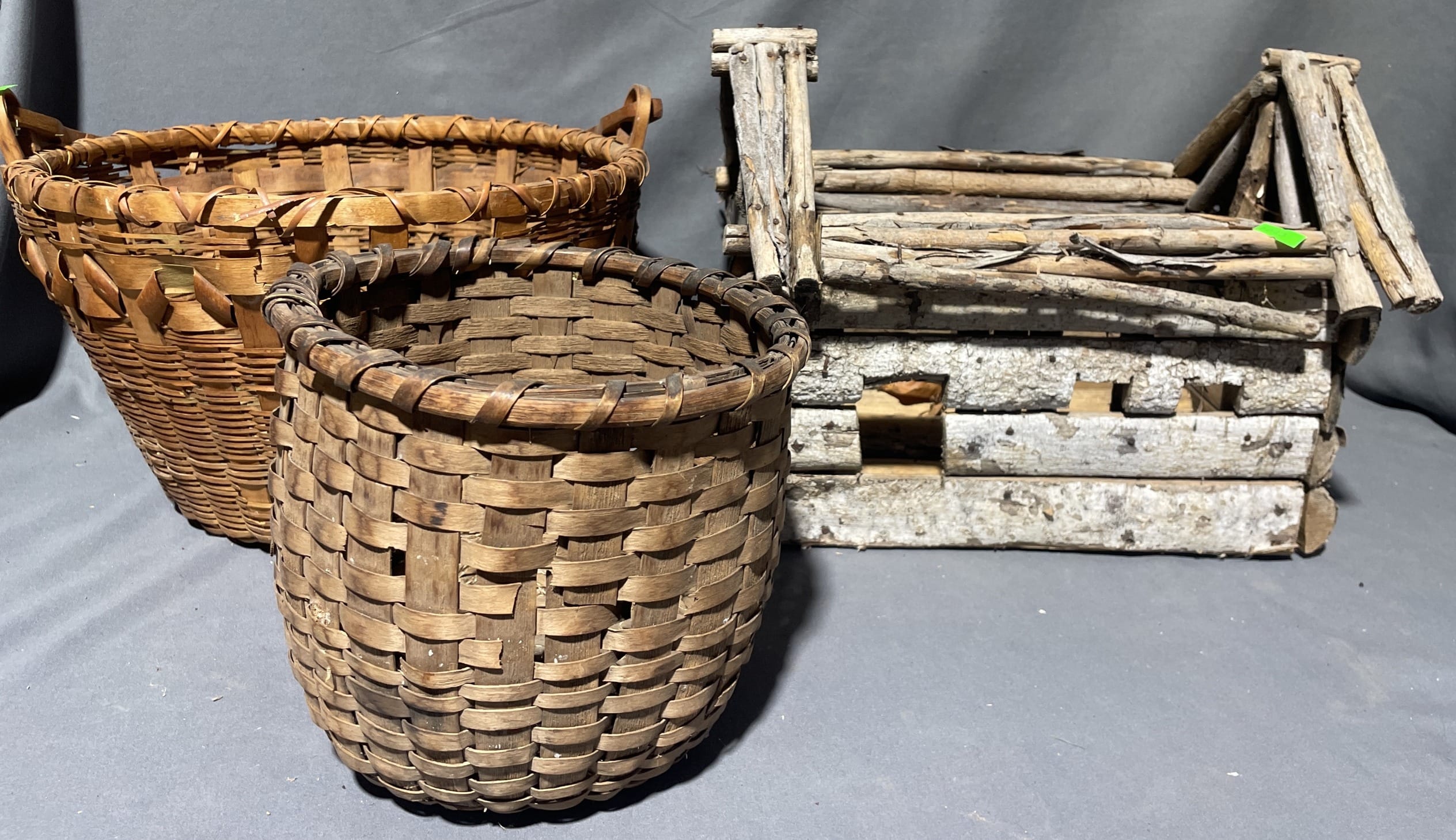 2043 (2) Baskets, Distressed Wooden Bird House (no top)