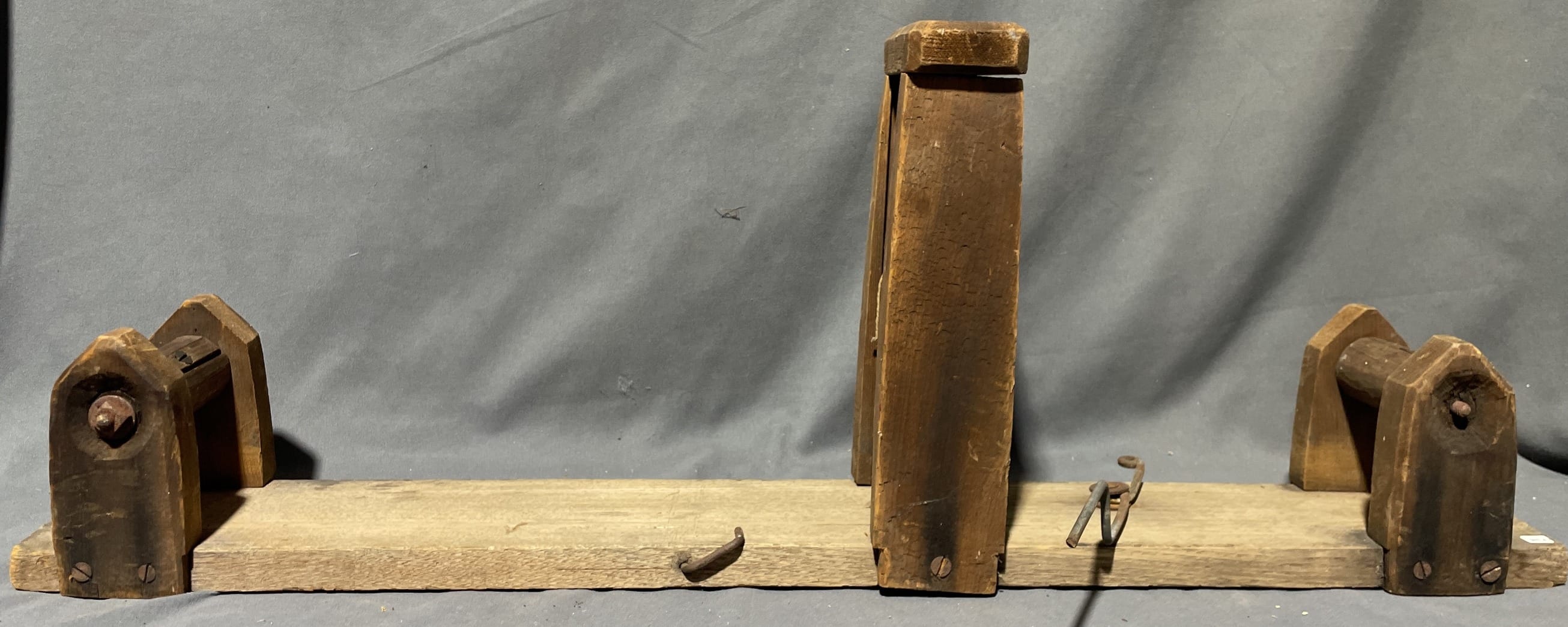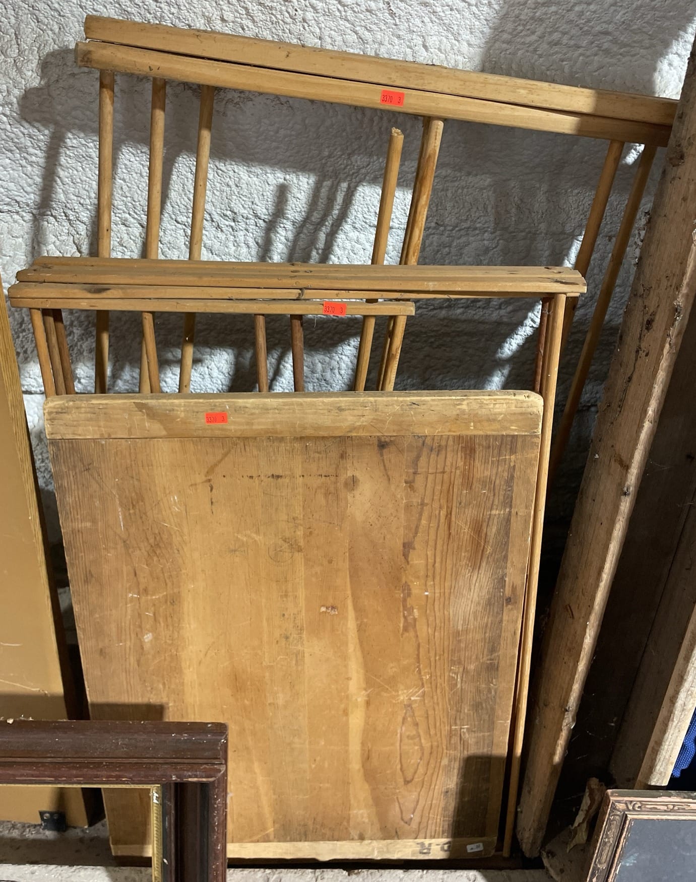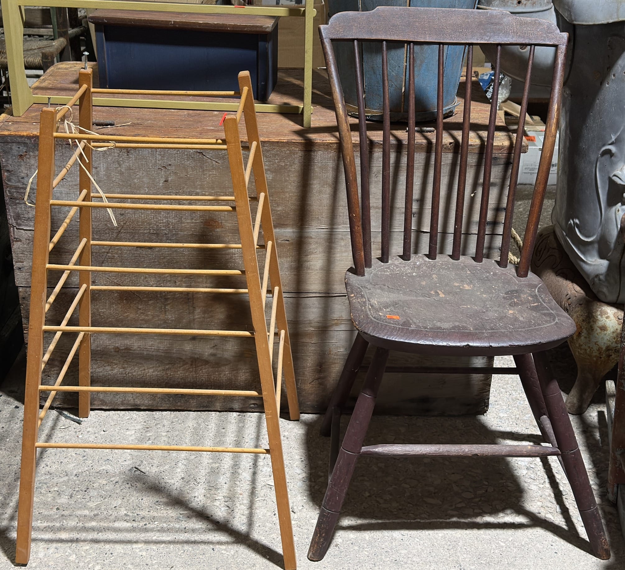 3262 Primitive Drying Rack & Windsor Style Plank Bottom Chair with Tulip Outline -- Rack measures 12x12x30