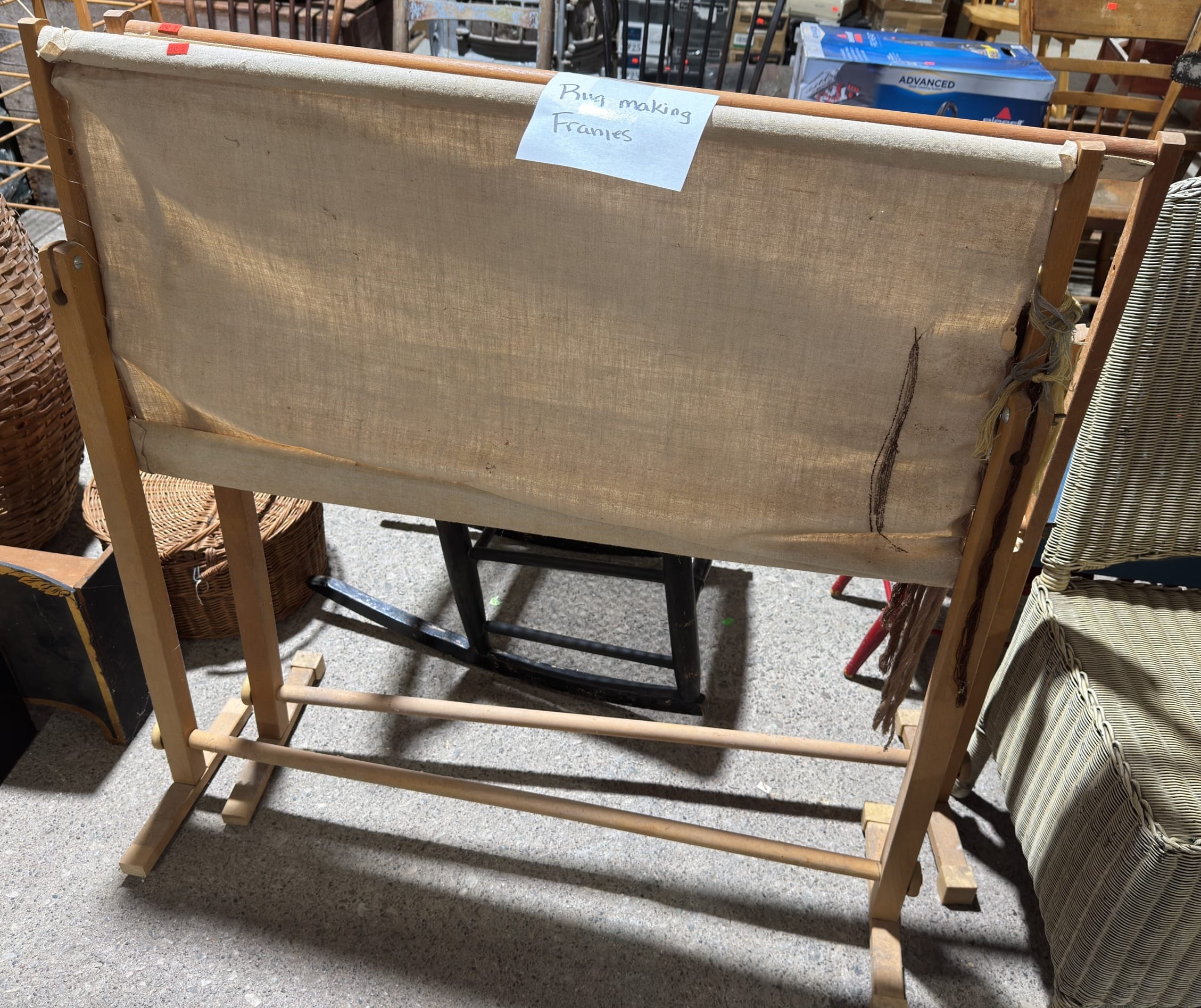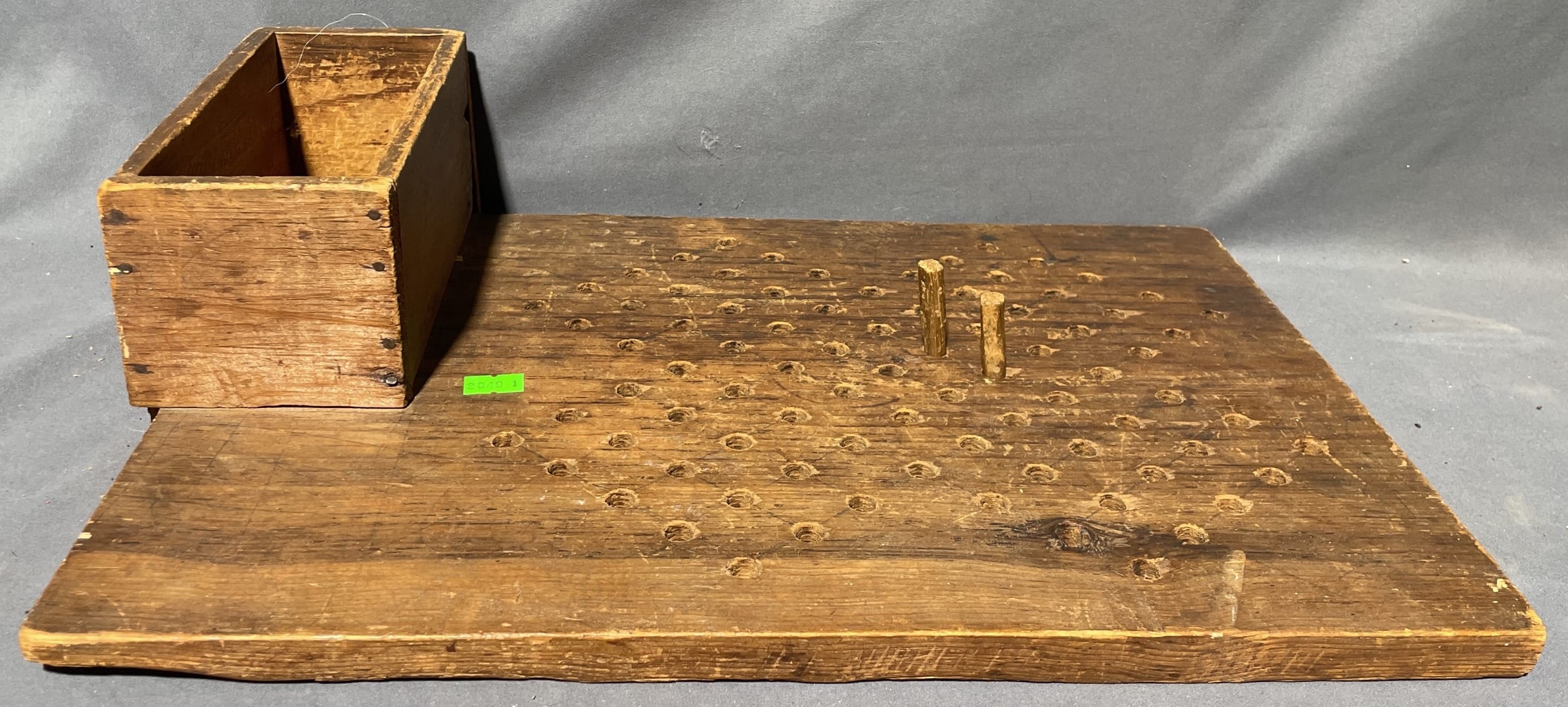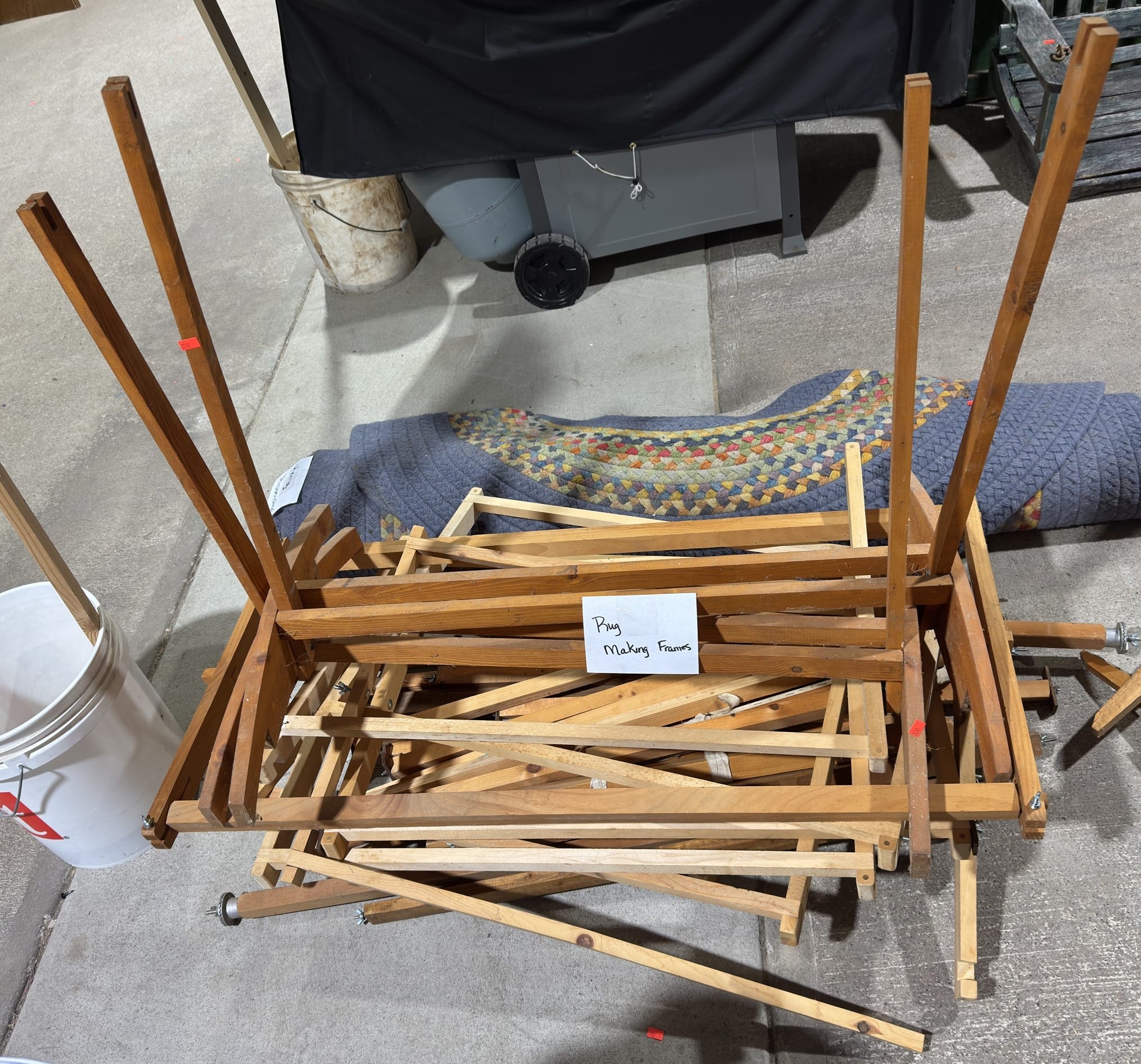 3262 Primitive Drying Rack & Windsor Style Plank Bottom Chair with Tulip Outline -- Rack measures 12x12x30