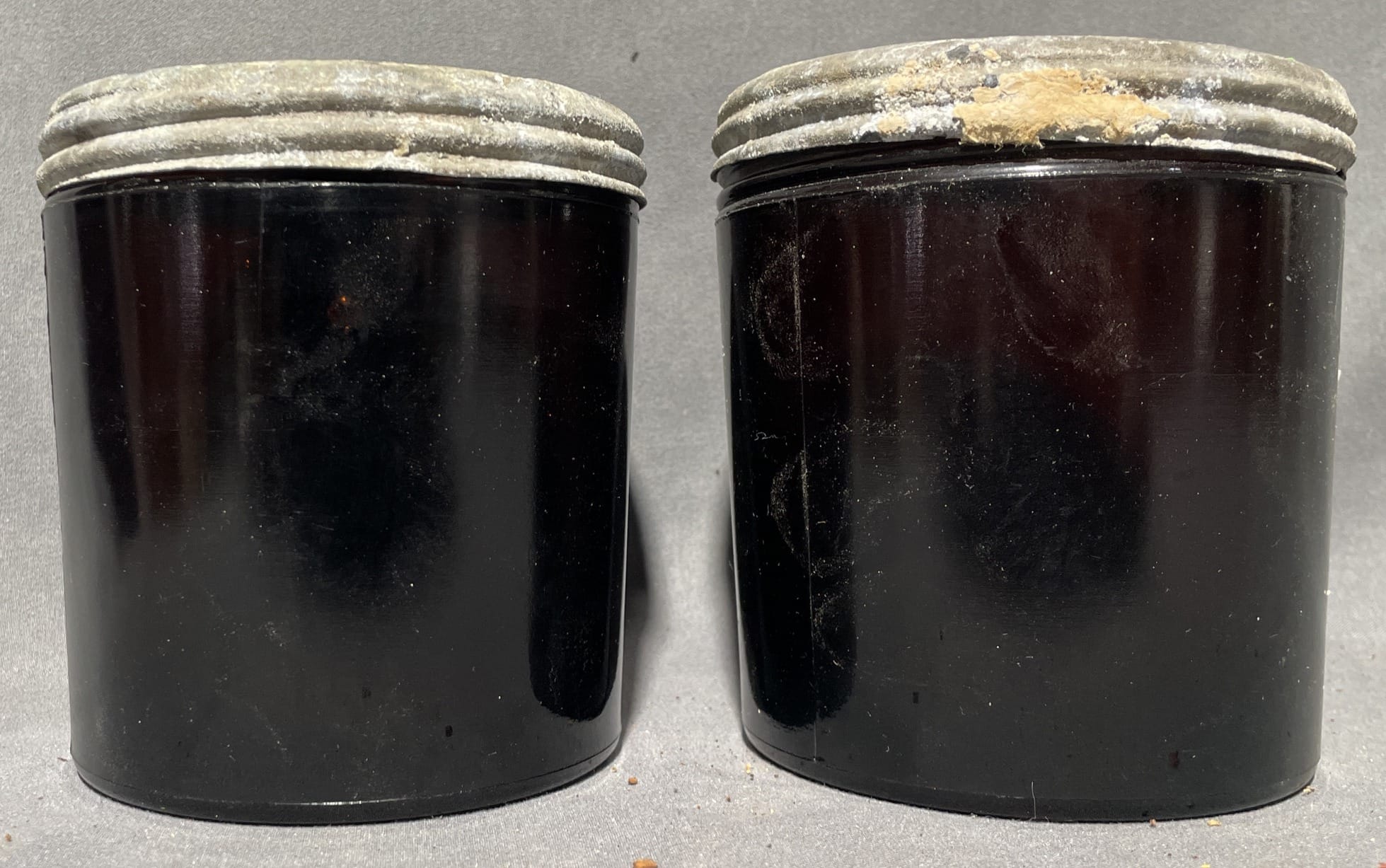 2061 (2) Amber Glass Jars with Lids 4”x4”