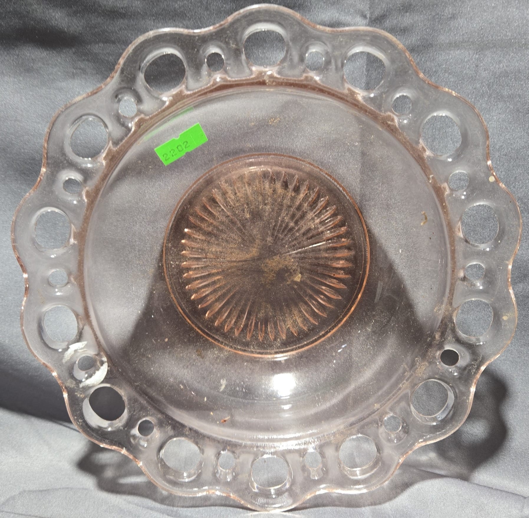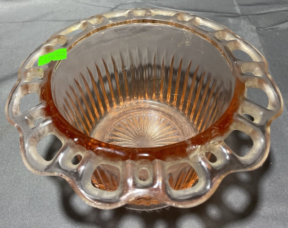 2074 Pink Depression Glass Anchor Hocking Open Lace Bowl 3”H 7”W