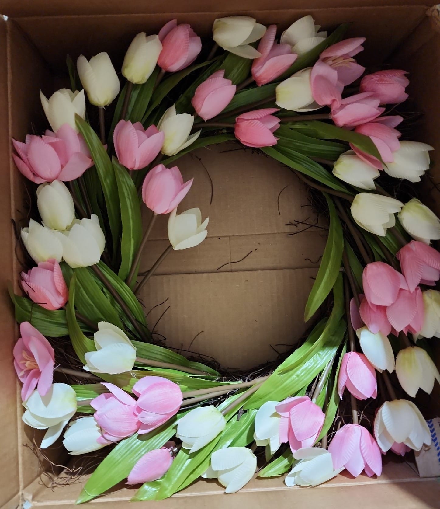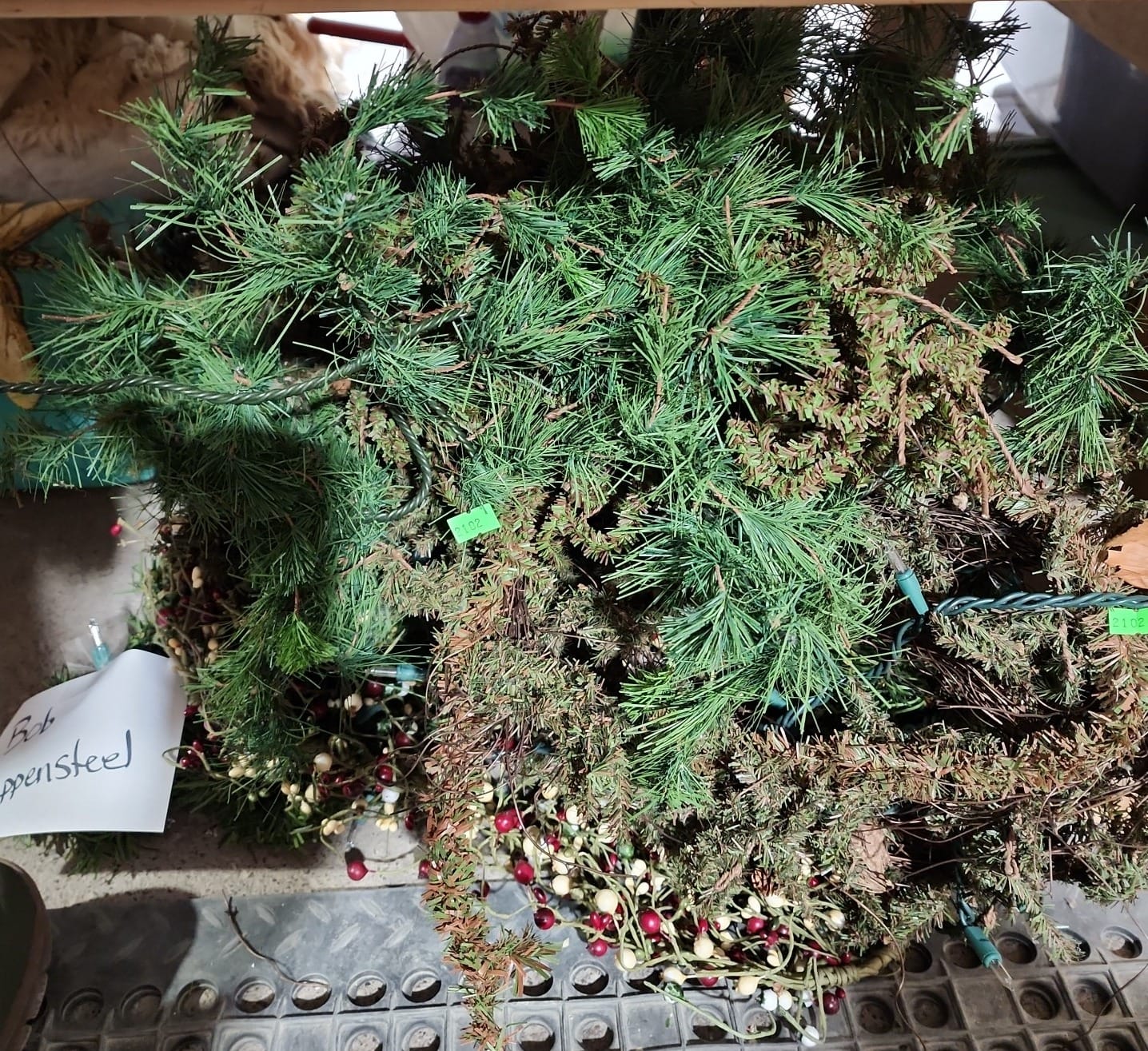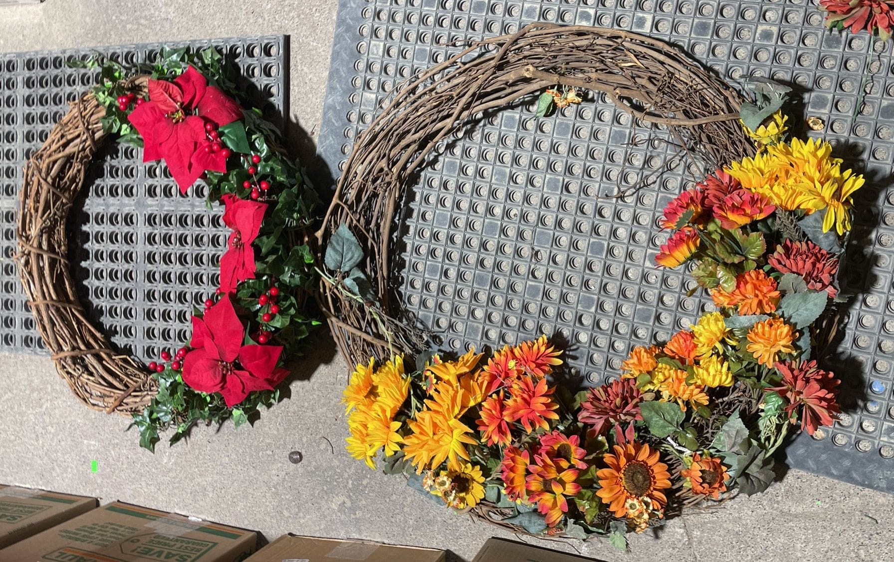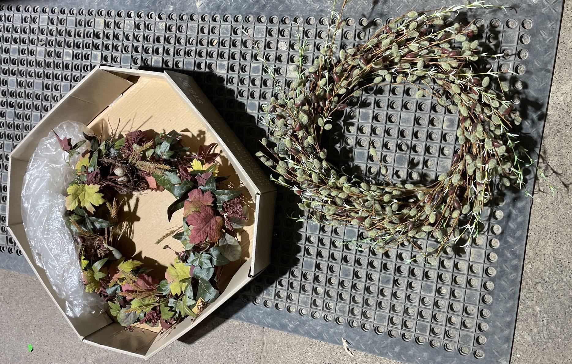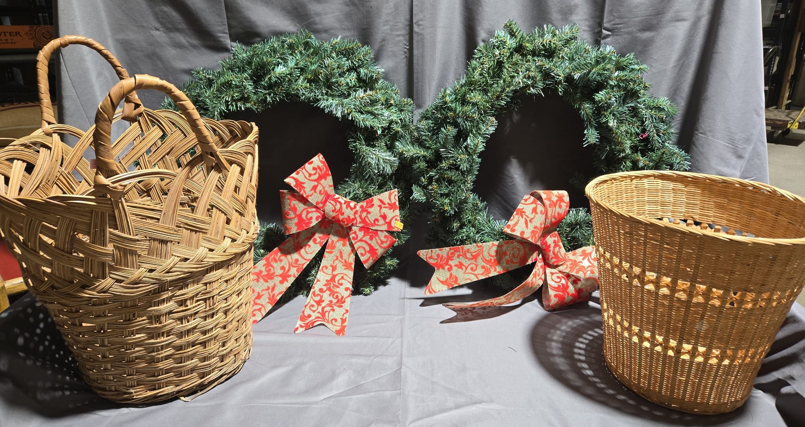 3083 (2) Wicker Basket, (2) Christmas Wreaths
