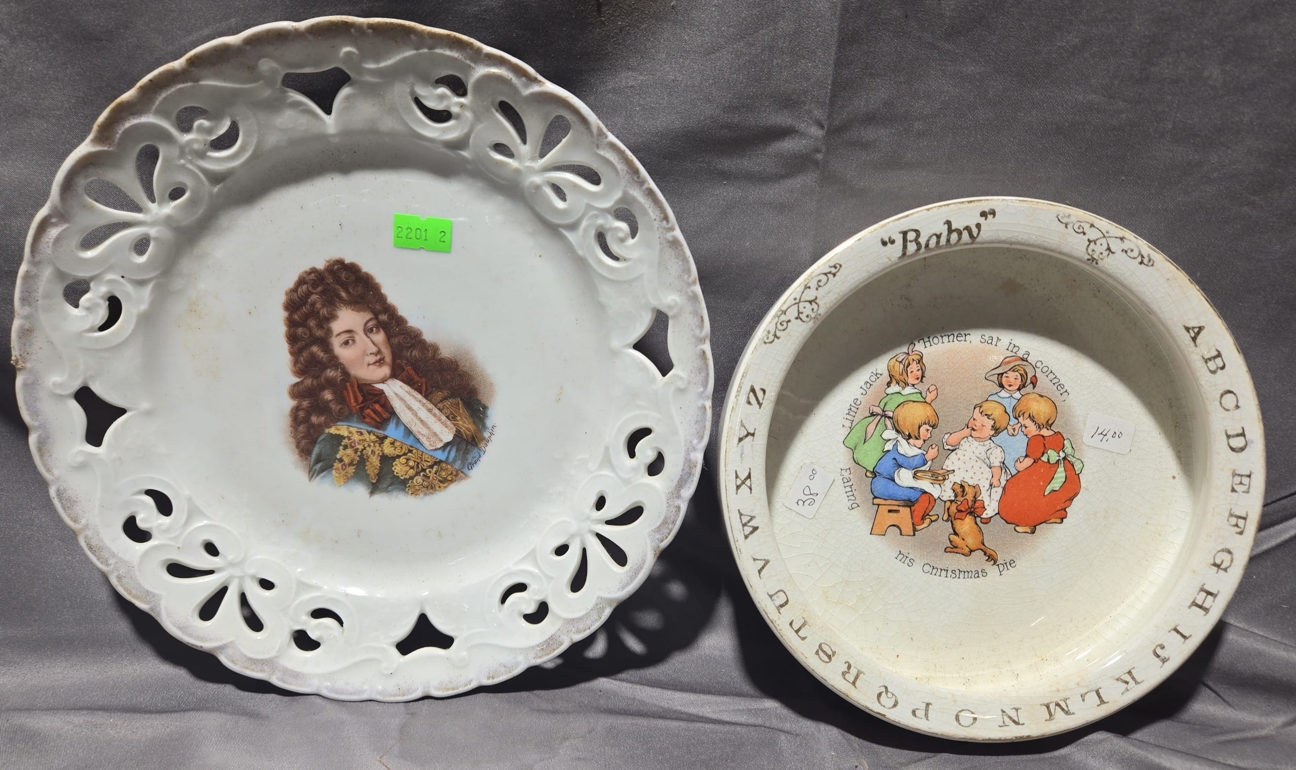 3080 (2) Mango Wood Candle Stick Holders, B.W. Buenilum Plate 9”, Ben Franklin Mug