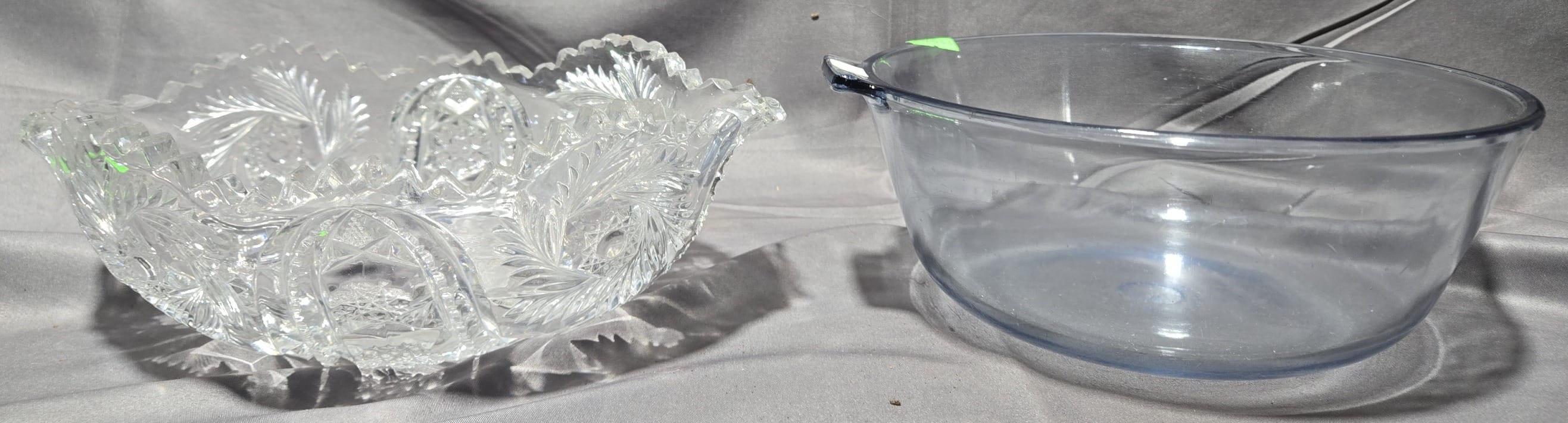 2009 (2) Anchor Ovenware Deep Pie Glass Plates, (1) 9.5in Glass Deviled Egg Plate