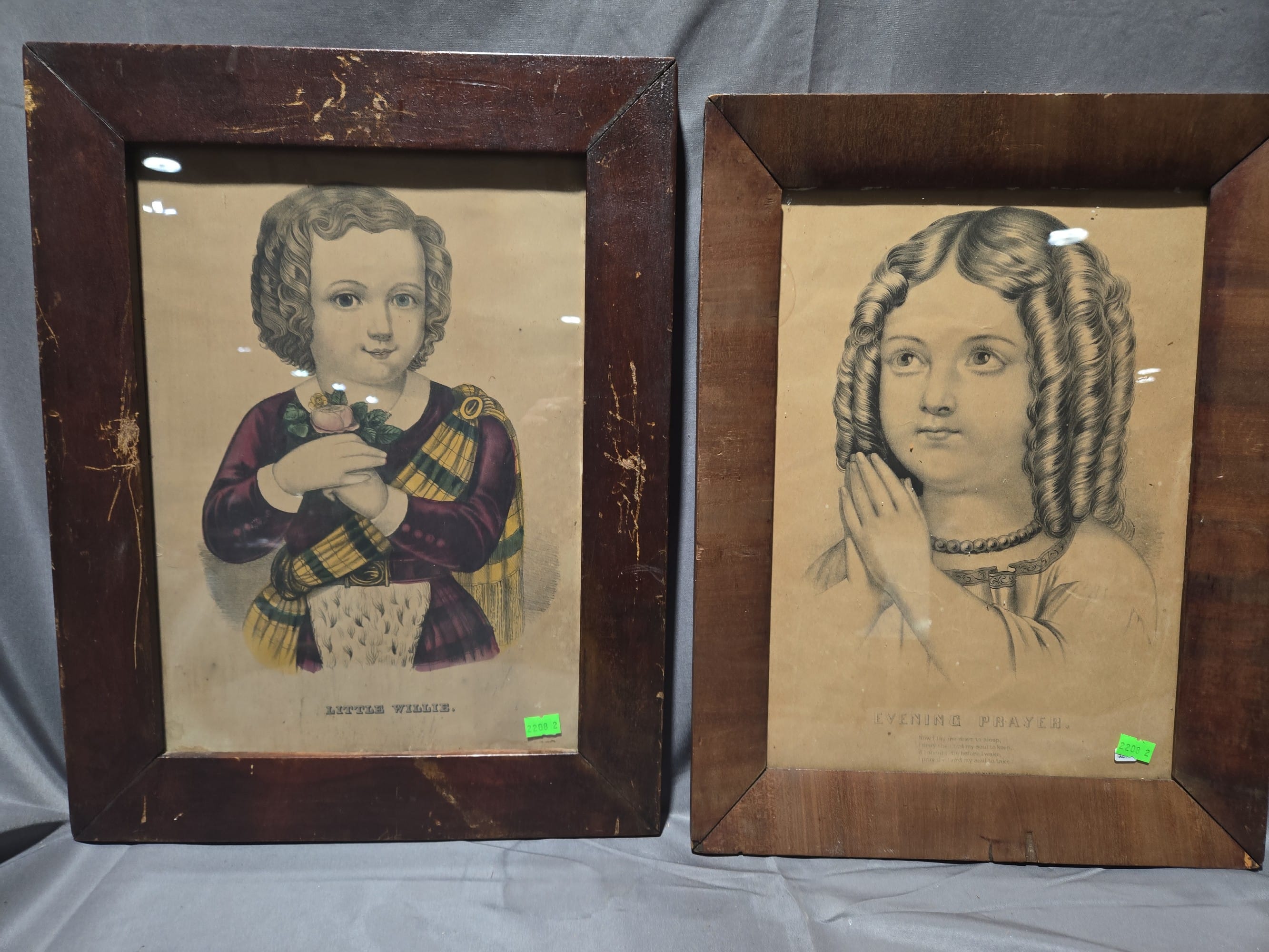 3369 Victorian Girl Framed Print & 2 Antique Picture Frames -- Print 14-23”