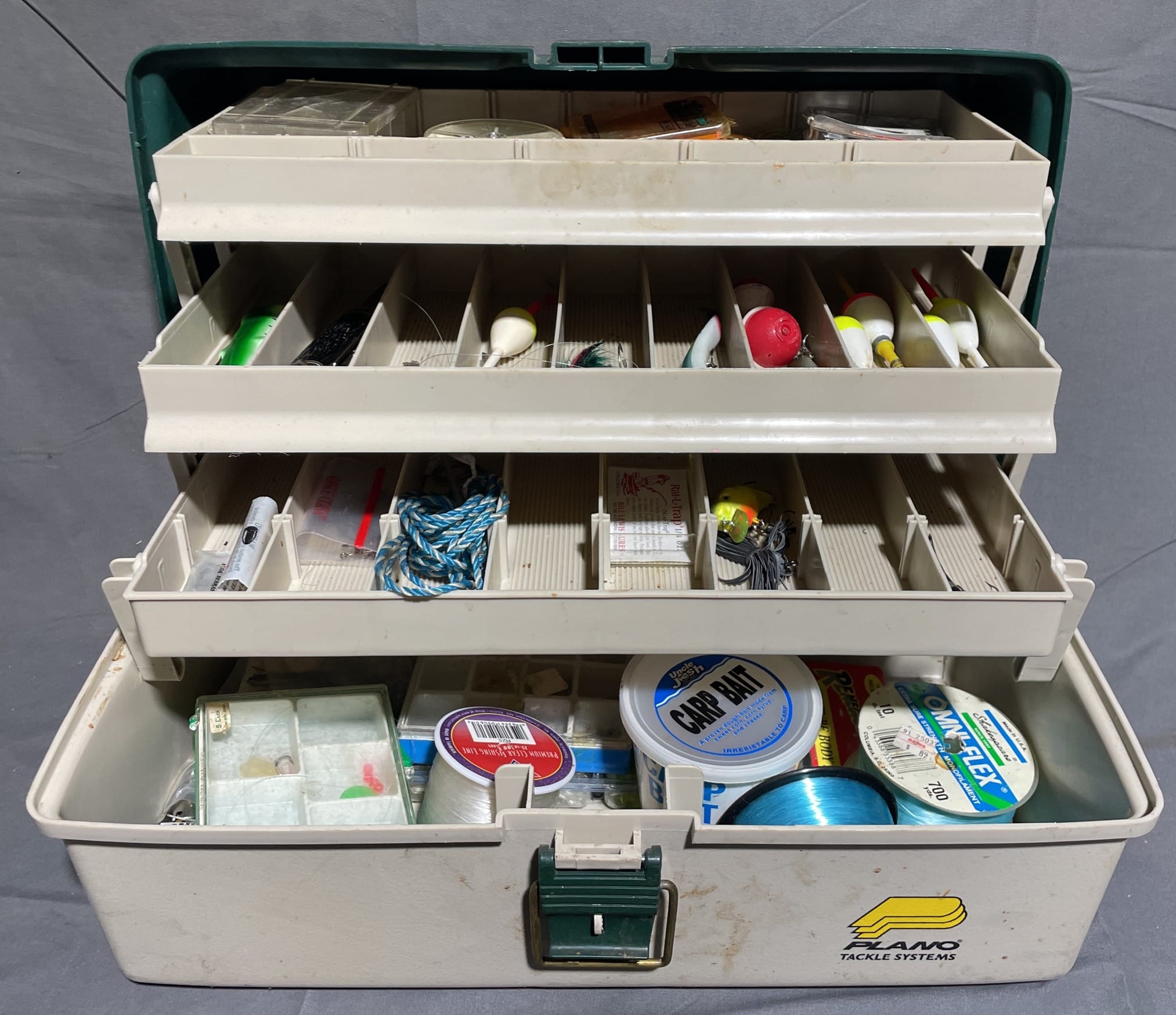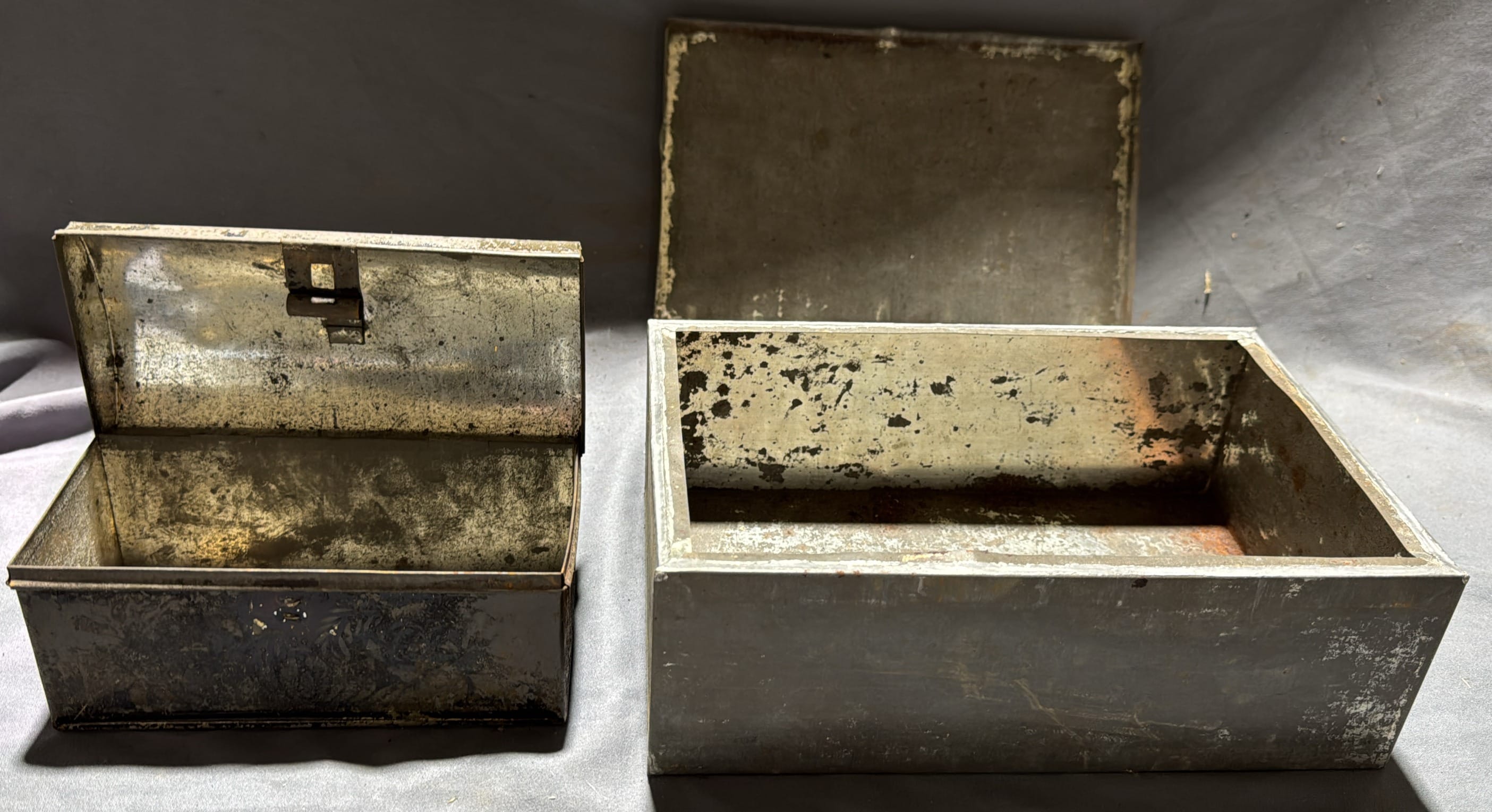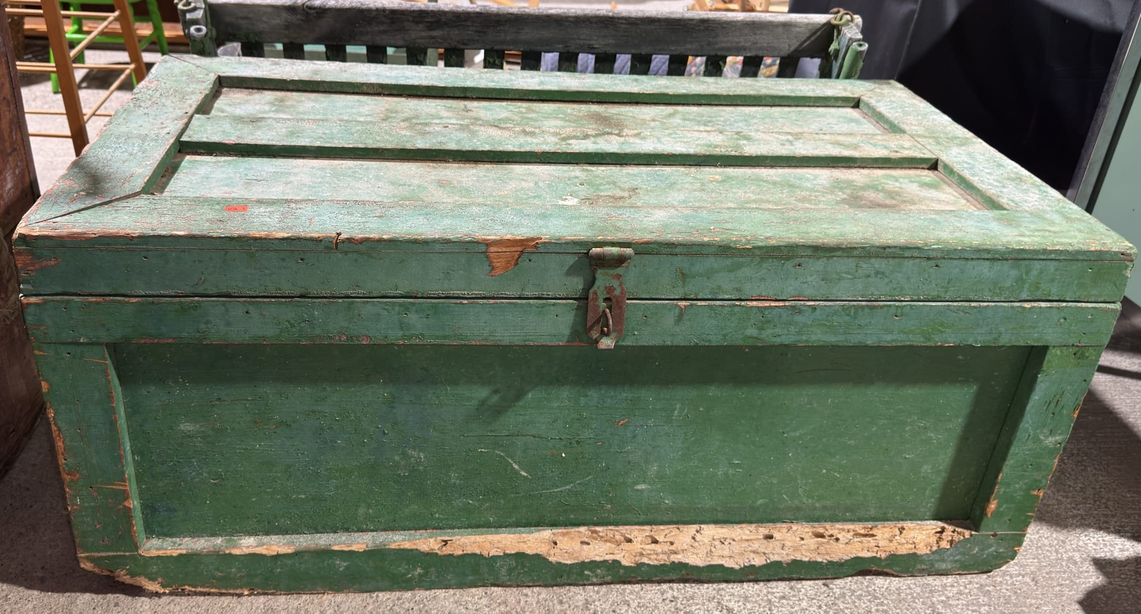 3276 Primitive Green Painted Wood Tool Chest with Misc. Contents inc. Primitives 44x23x15