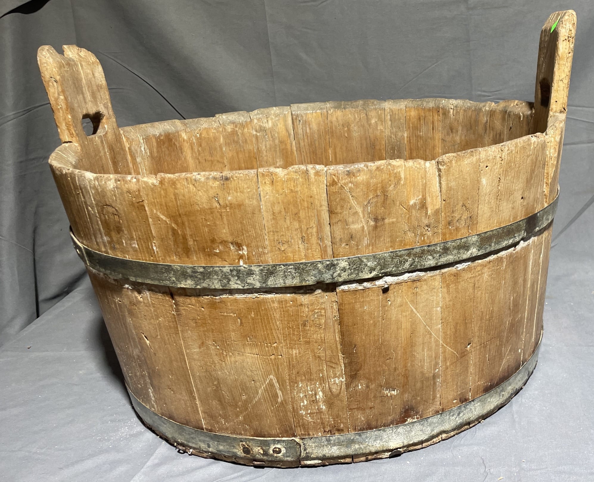 2056 Wood Whiskey Barrel (some damage) 19”H 13”W