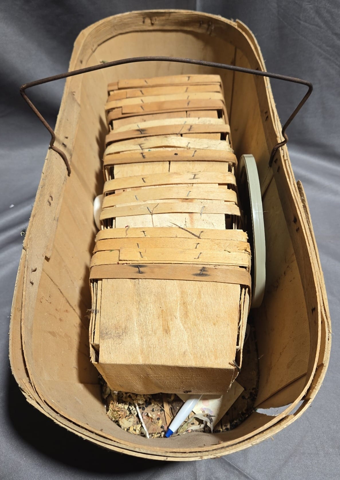 3252 Primitive Baskets -14”, Tall Basket with Lid has wear 25”