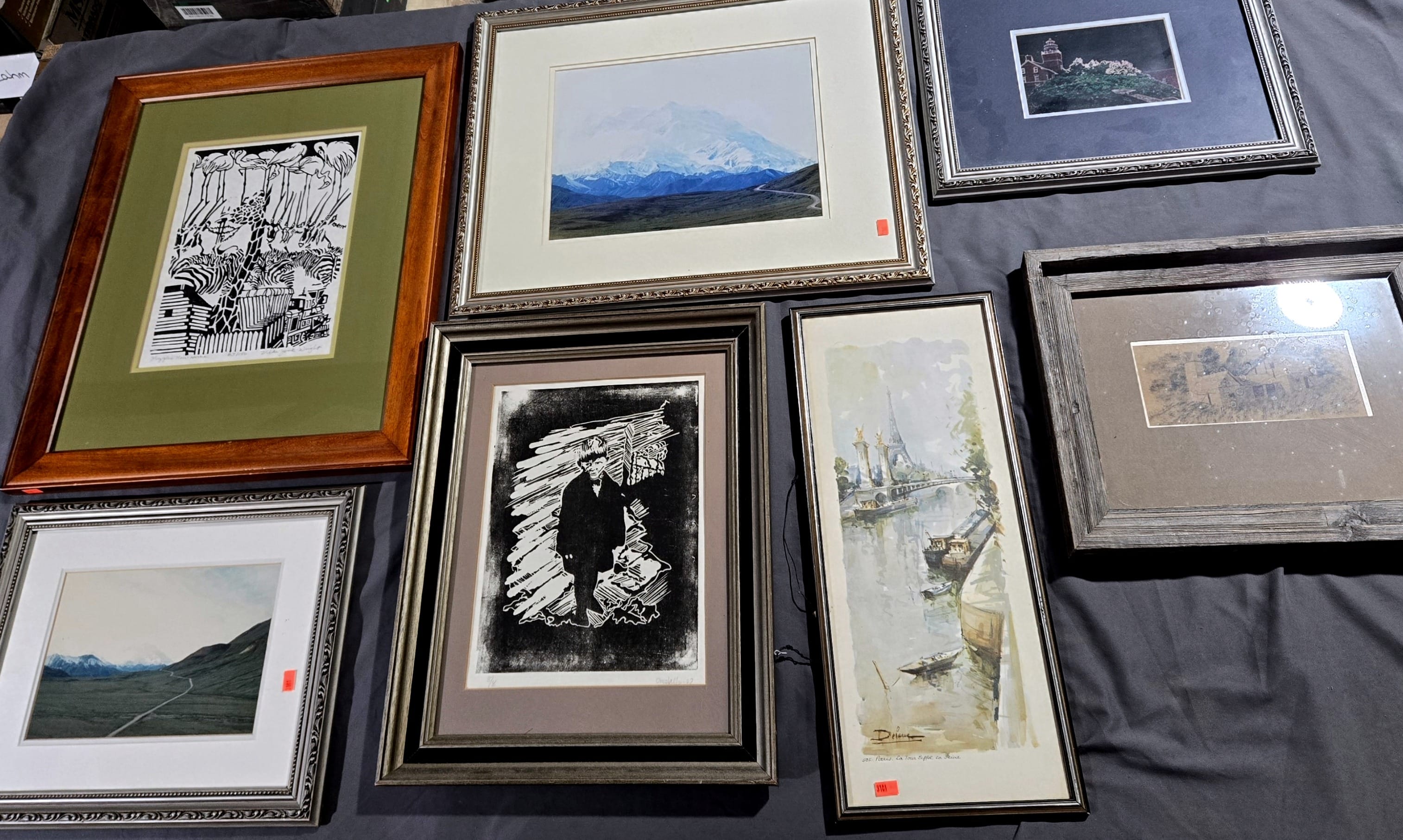 3101 Framed Prints 1960s Lucien Delarue Paris La Tour Eiffel ea Seine Print, Vicki Junk-Wright, C.M. Haller 67 Signed Print, Nature Scenes Prints 19.5”x23.5”- 9”x21”