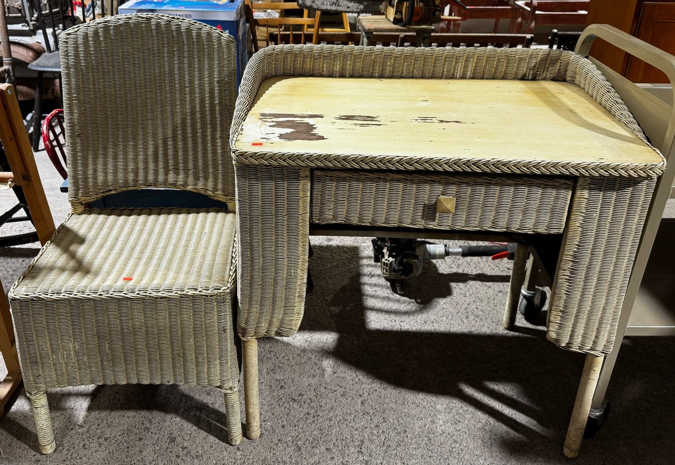 3243 Wicker Desk with Chair (shows wear) 32x21x33