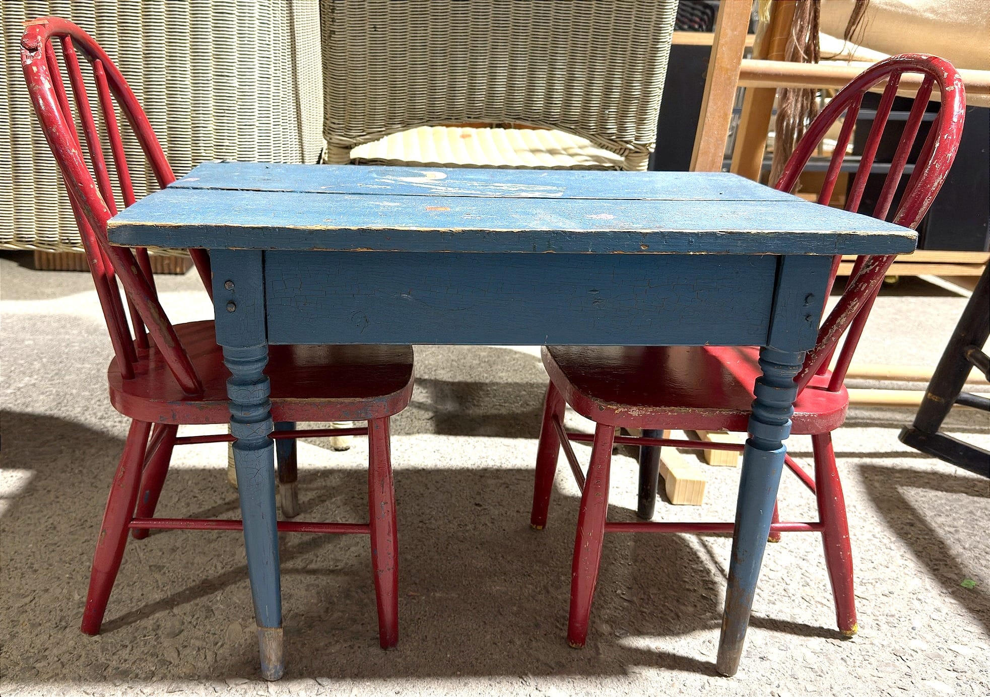 3250 Primitive Painted Child’s Table & 2 Chairs 24x16 1/2x17