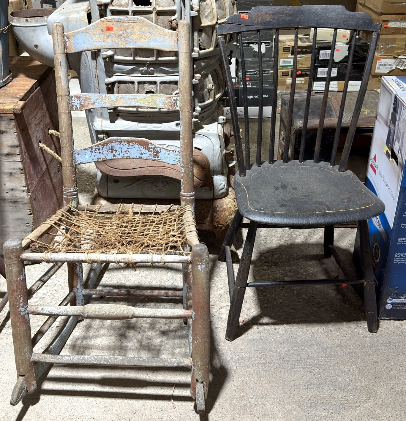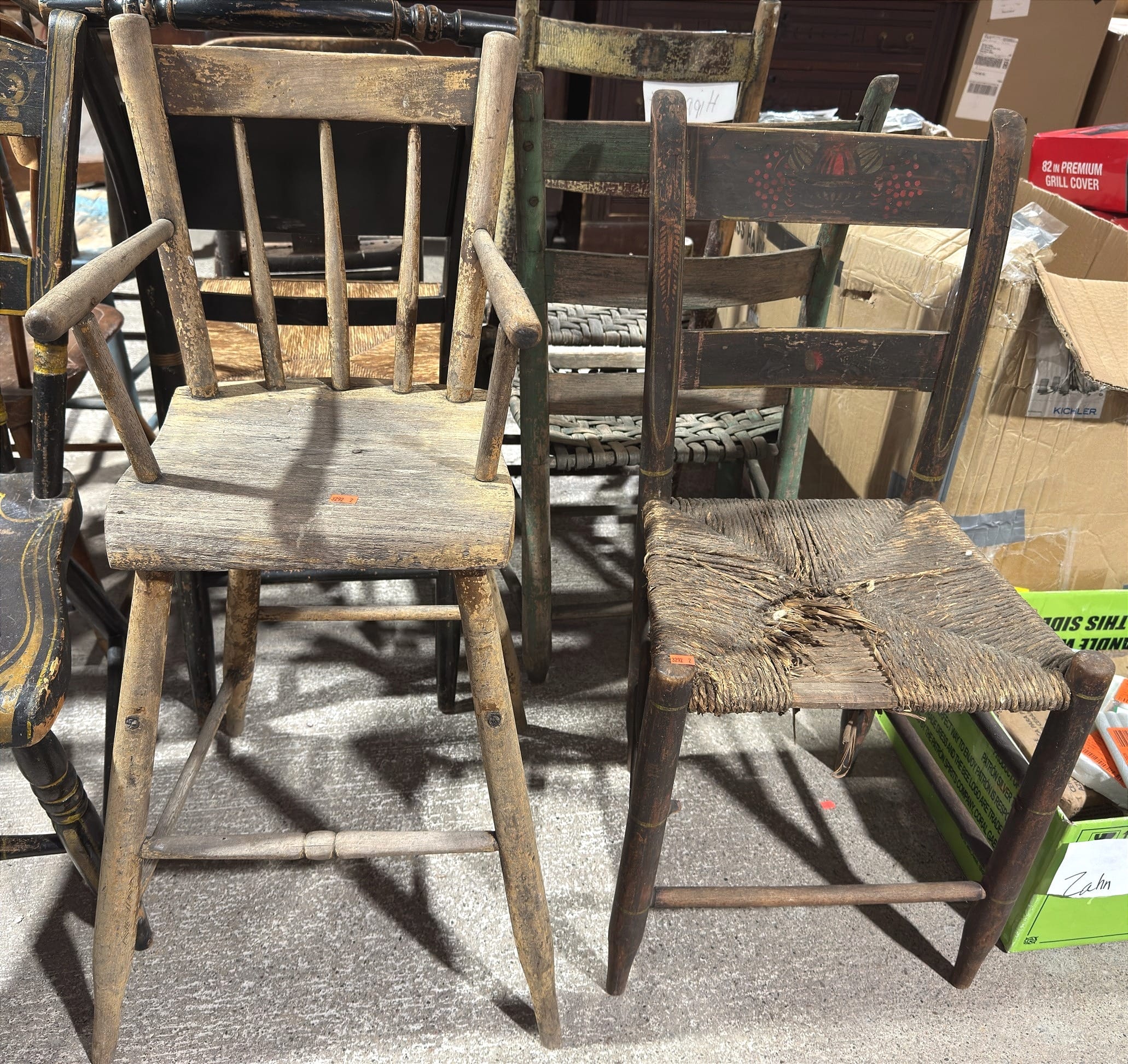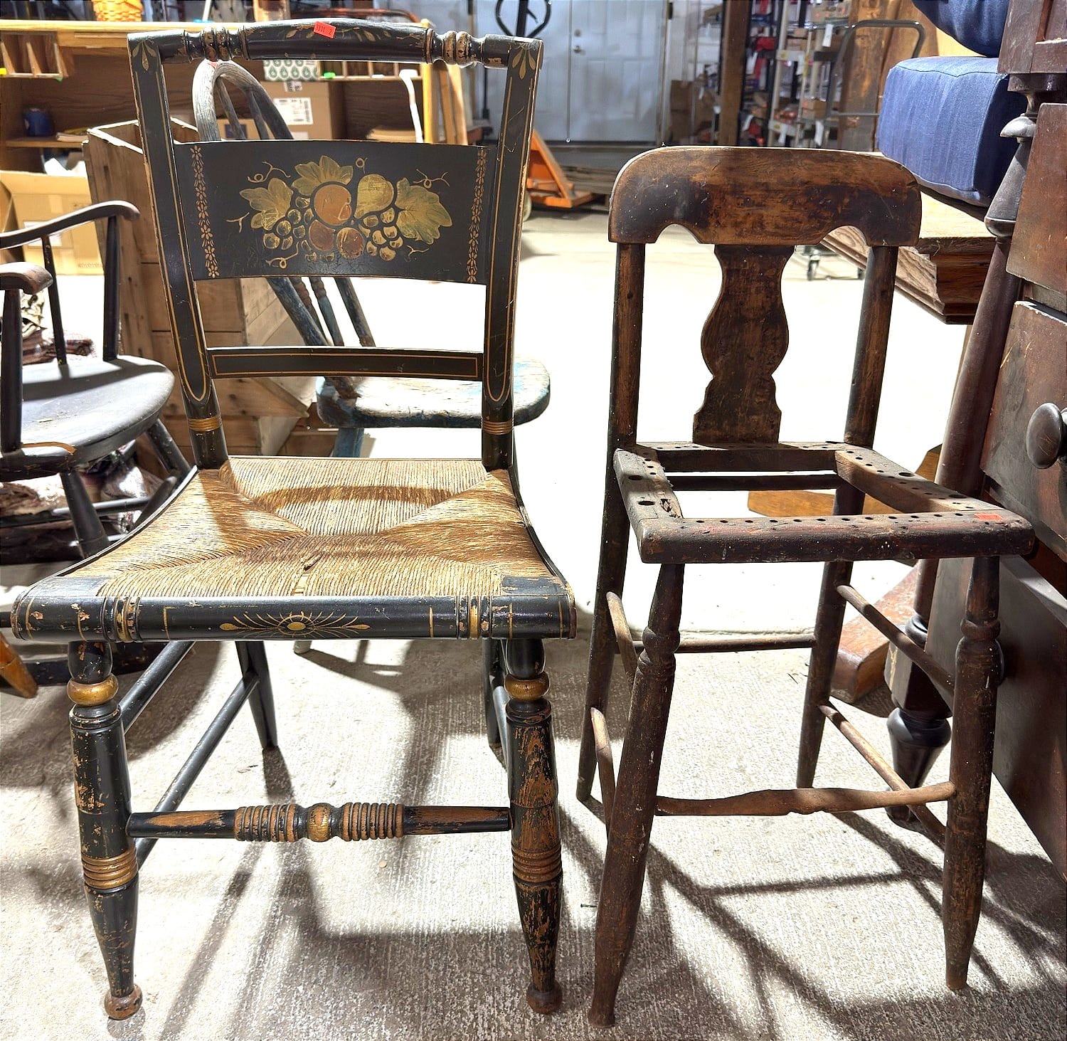 3292 Rope Bottom Straight Chair with Early Paint & Primitive High Chair