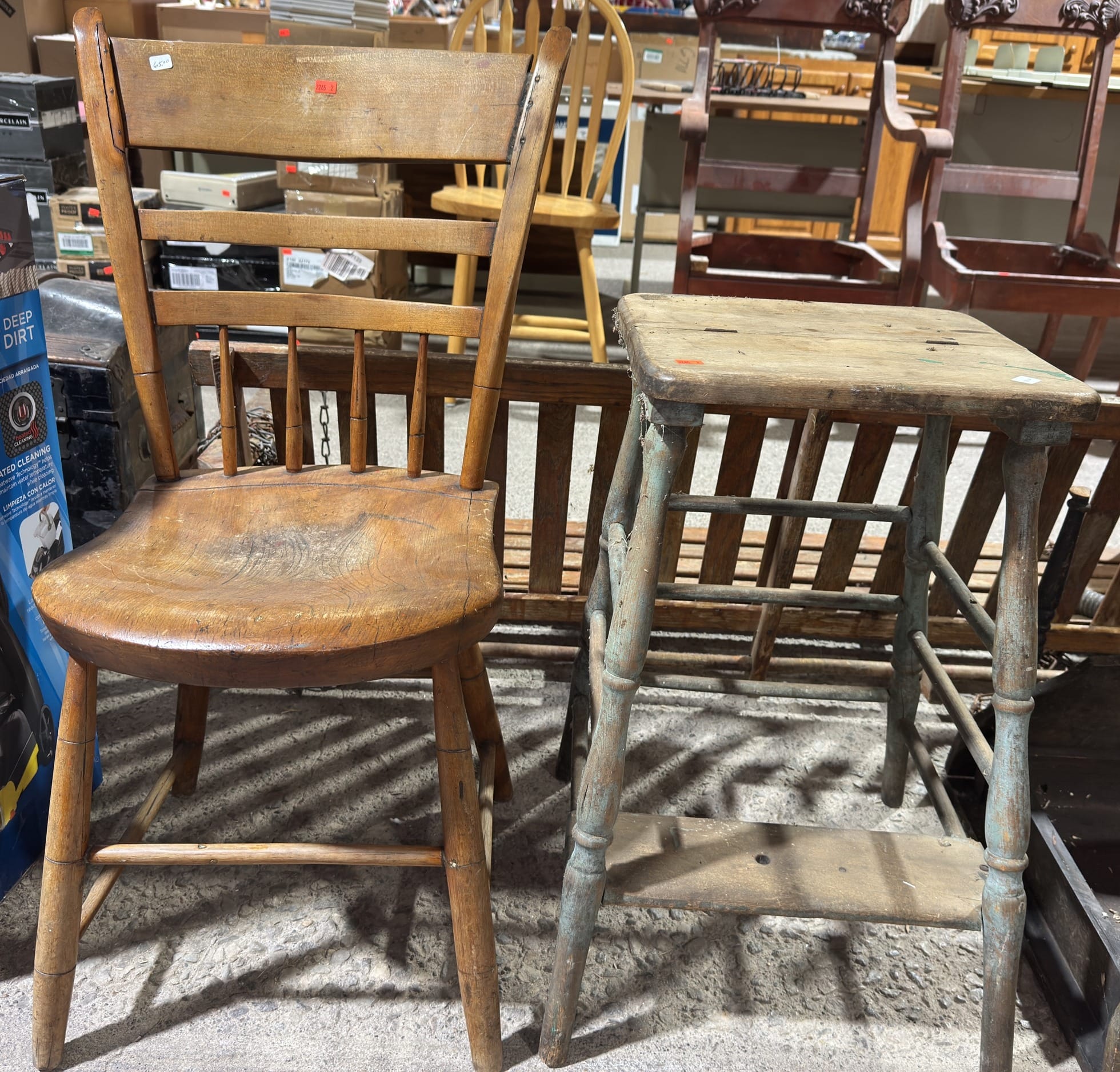 3265 Plank Bottom Chair & Primitive Stand with paint 24”
