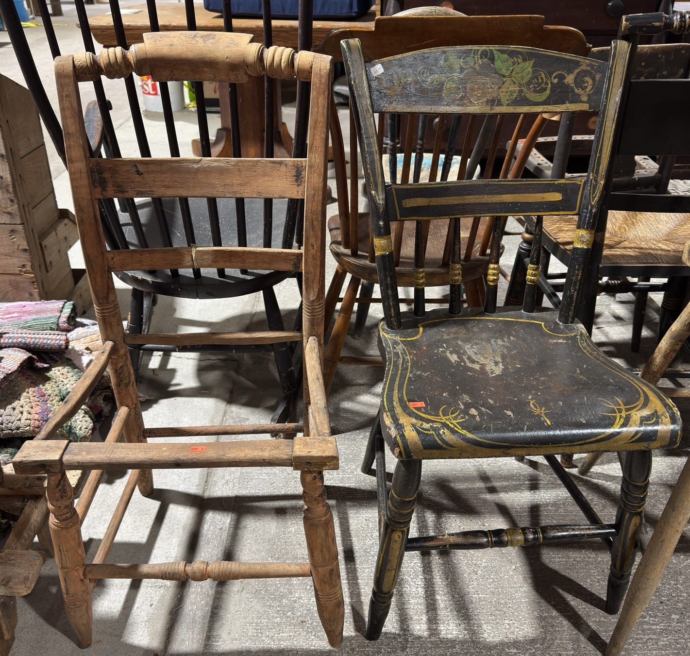 3311 Hitchcock Style Painted Plank Bottom Chair & Primitive Chair Frame