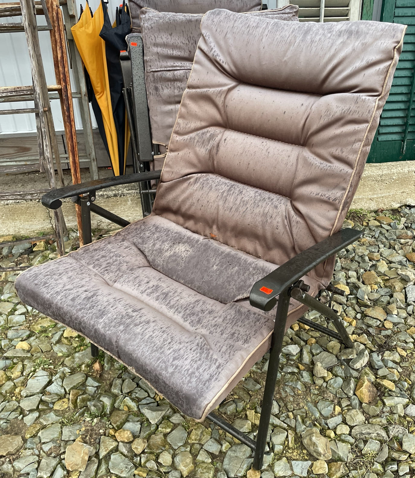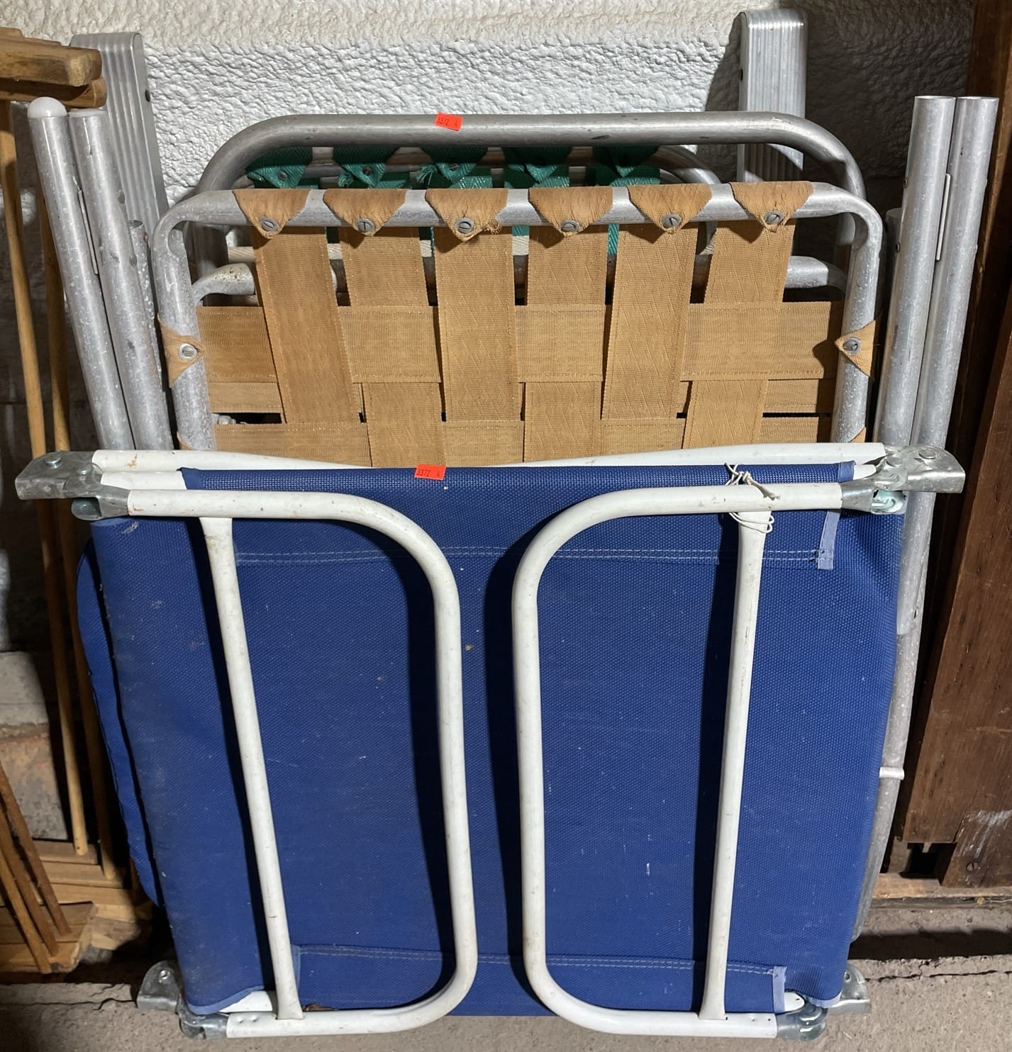 9201 4- Fold up fabric lawn chairs, Umbrella