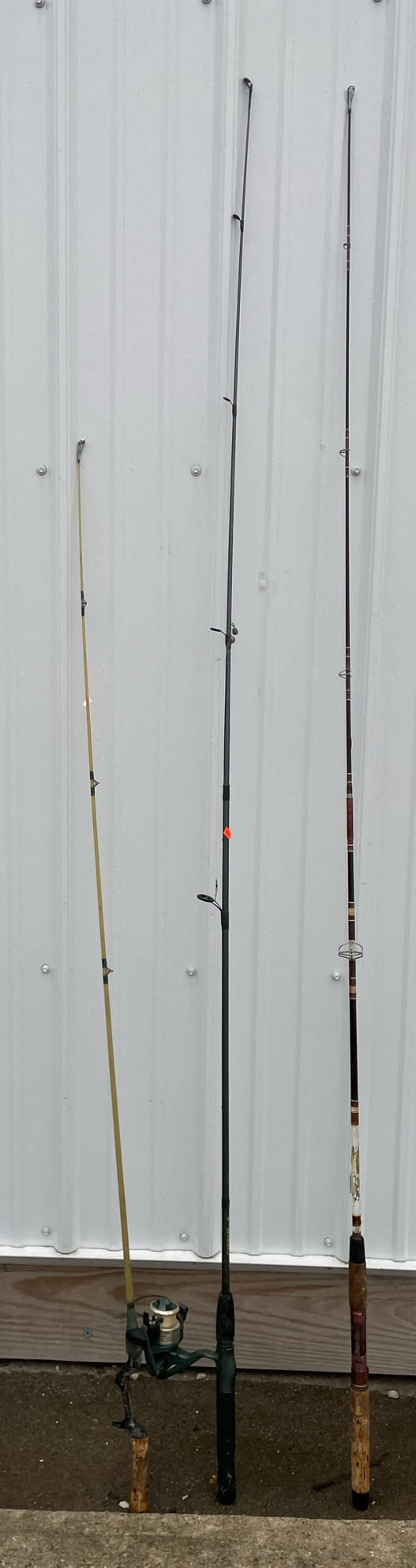 9207 3- Fishing poles inc. Toughy Wright & McGill, Shakespeare Cirrus