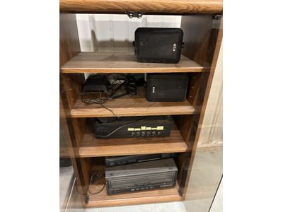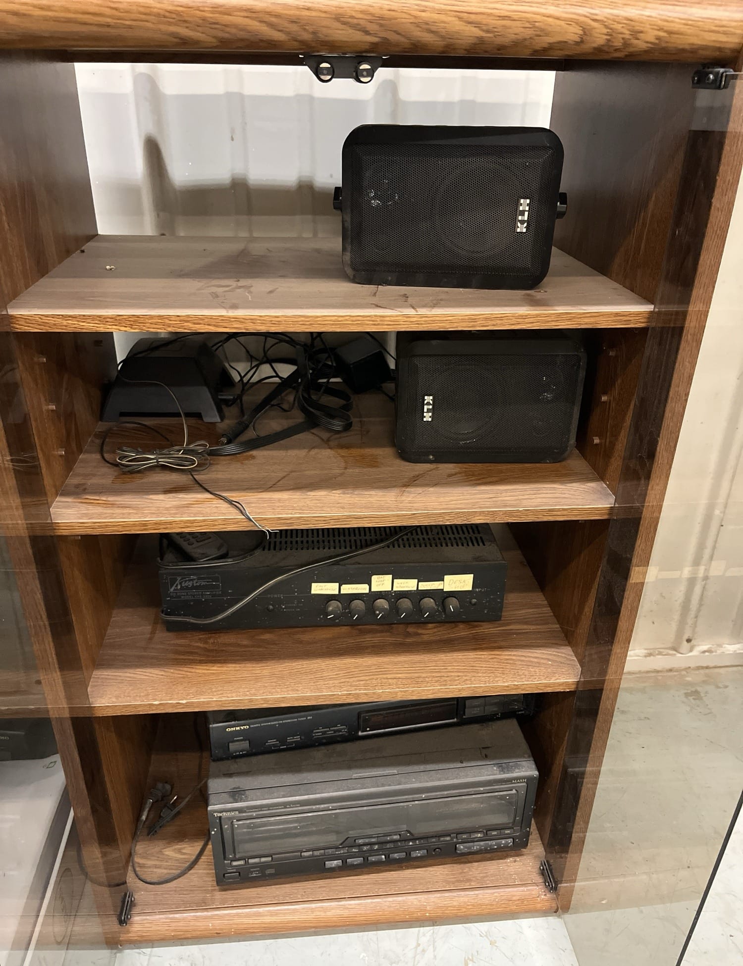 100 Stereo Cabinet With Kustom Amplifier (Model KHS-24DV), Onkyo FM/AM Tuner, Technics Compact Disc Changer (Model SL-MC50) 24x18x42"