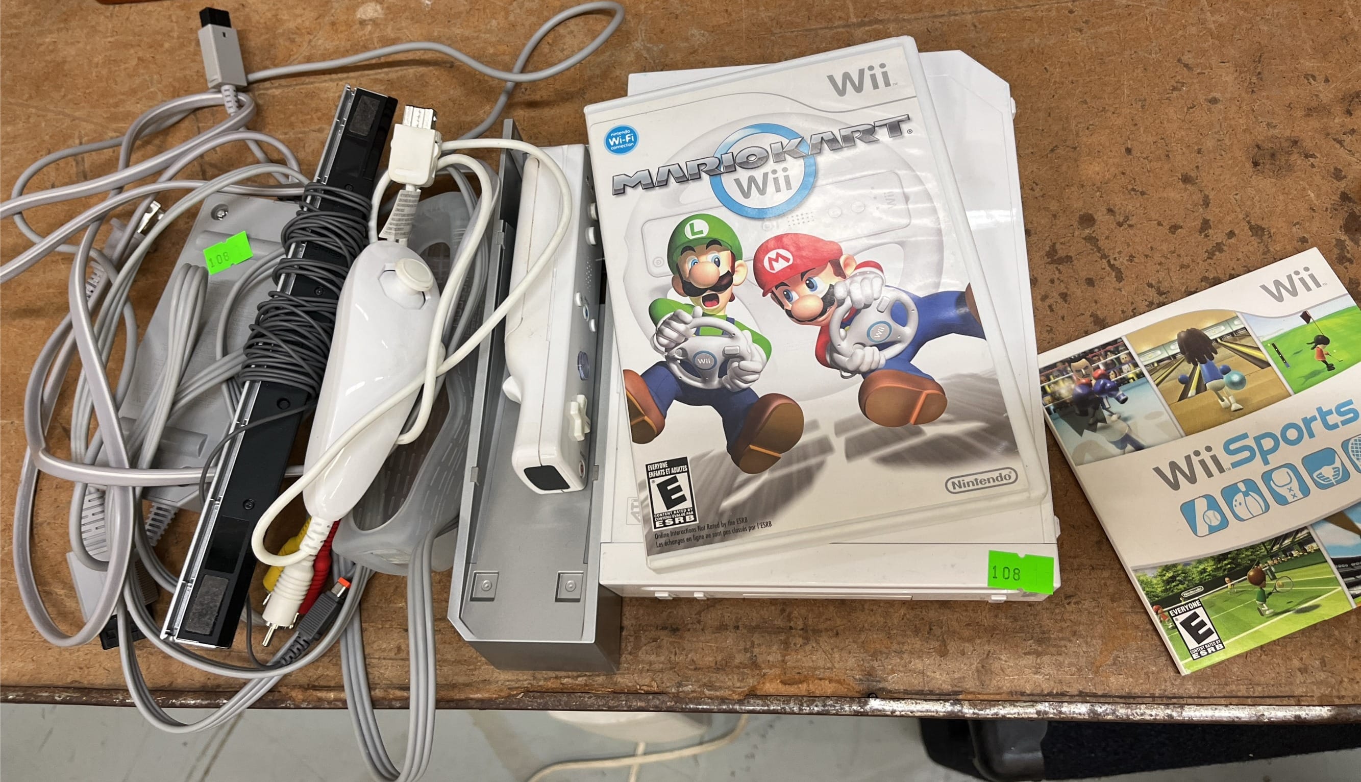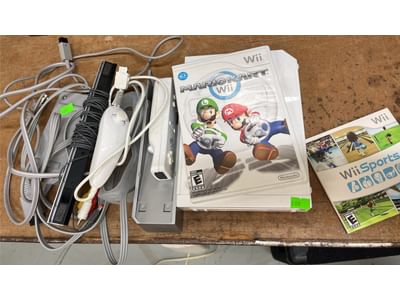 108 Nintendo Wii Console - Serial # LU382622739, Controller and Joystick & Games Inc. Mario Kart & Wii Sports