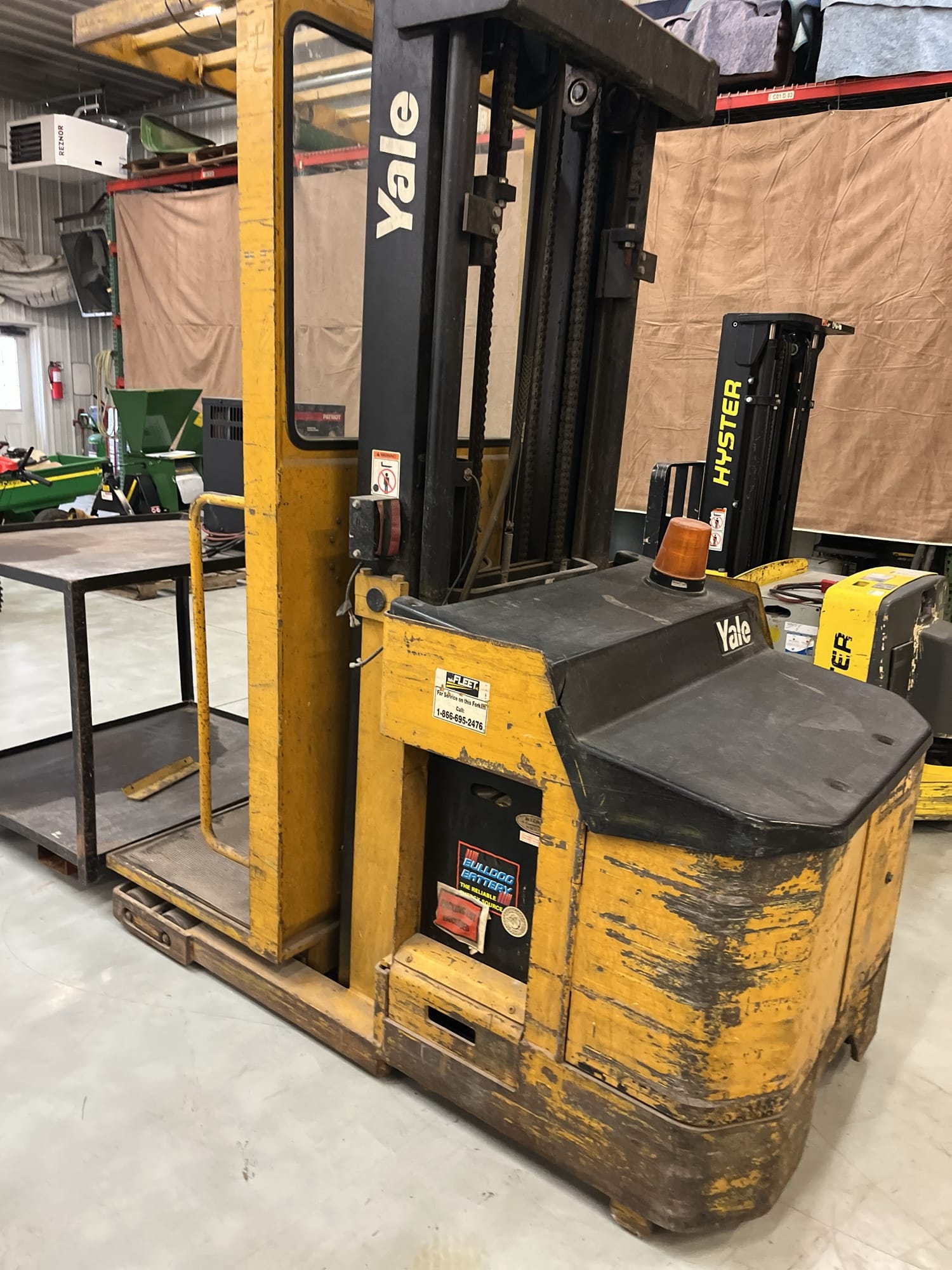 10 Yale Electric Order Picker, 24 V Battery, 3000 Pound Lifting Capacity, 195 Inch Reach, Weak Battery, Battery Charger Included, 4619 Hours, Spare Parts, Working Condition, Operators Manual, Model: 0S030EAN24TE089, Serial # N558213