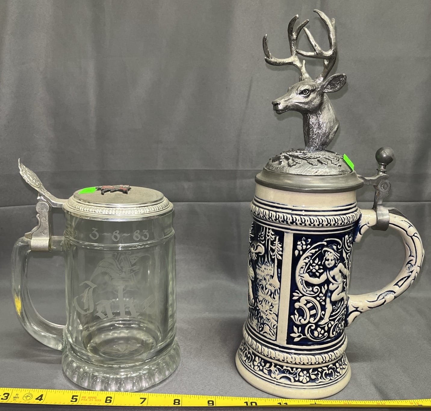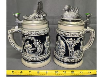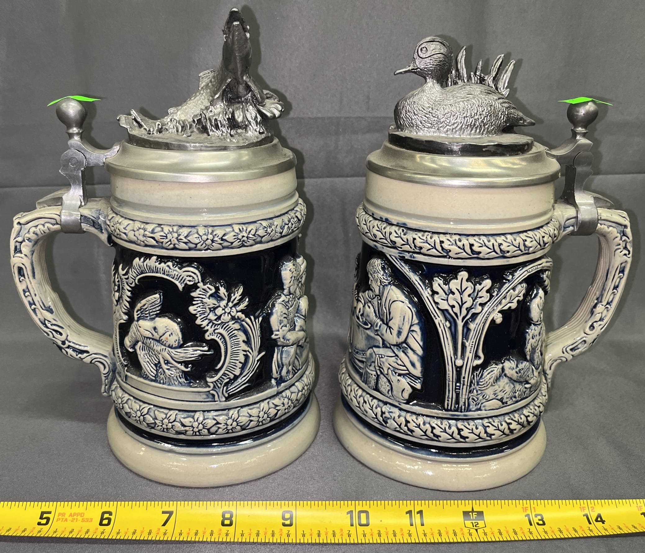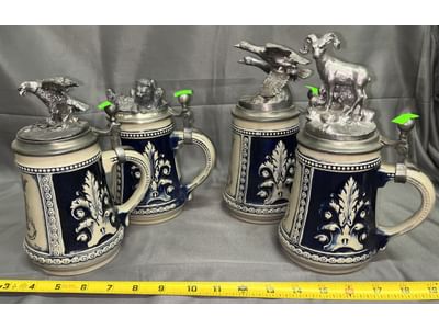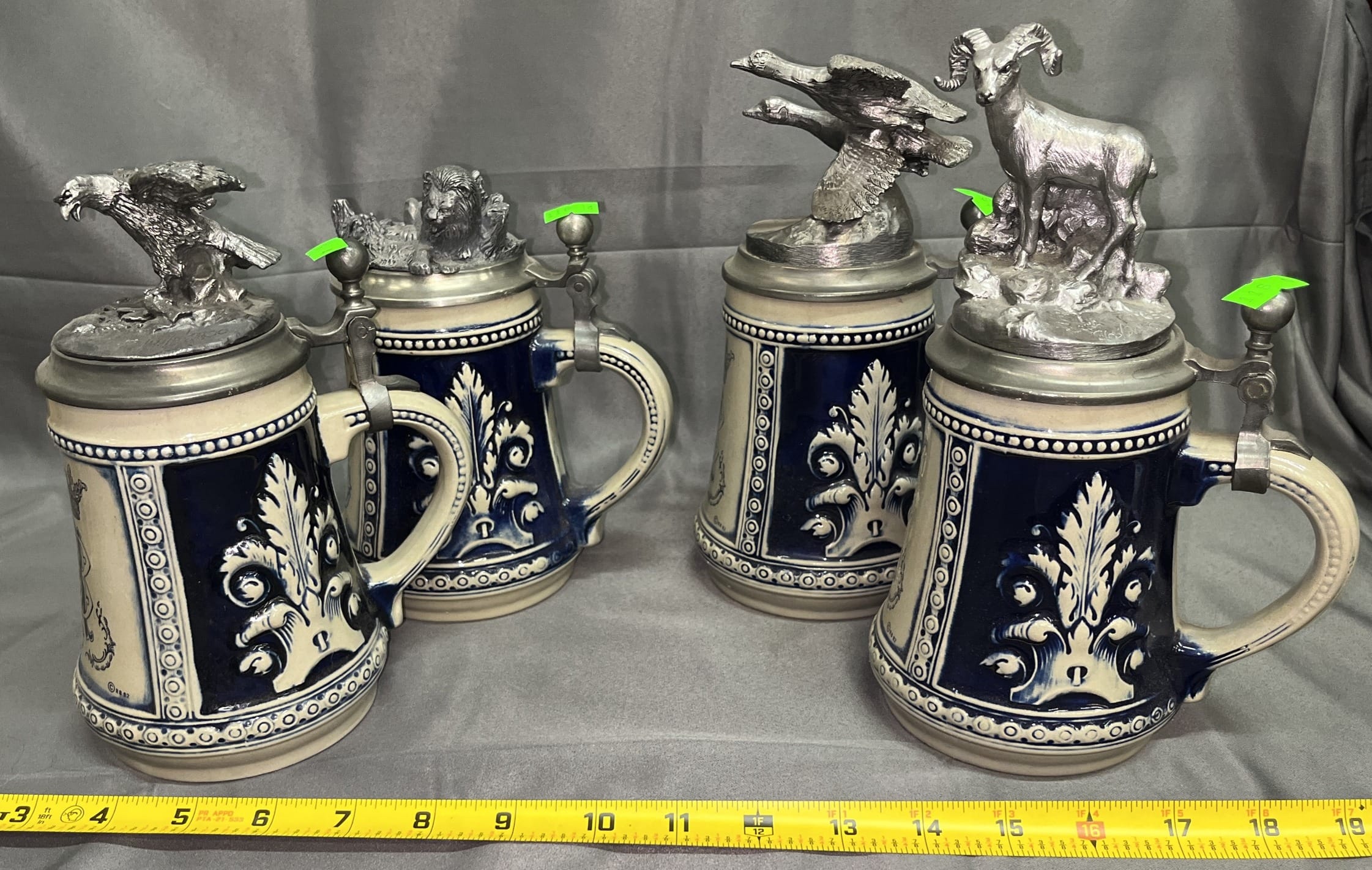 116 (4) Germany Gertz Steins With Pewter Tops- Tops Are Signed By Artists
