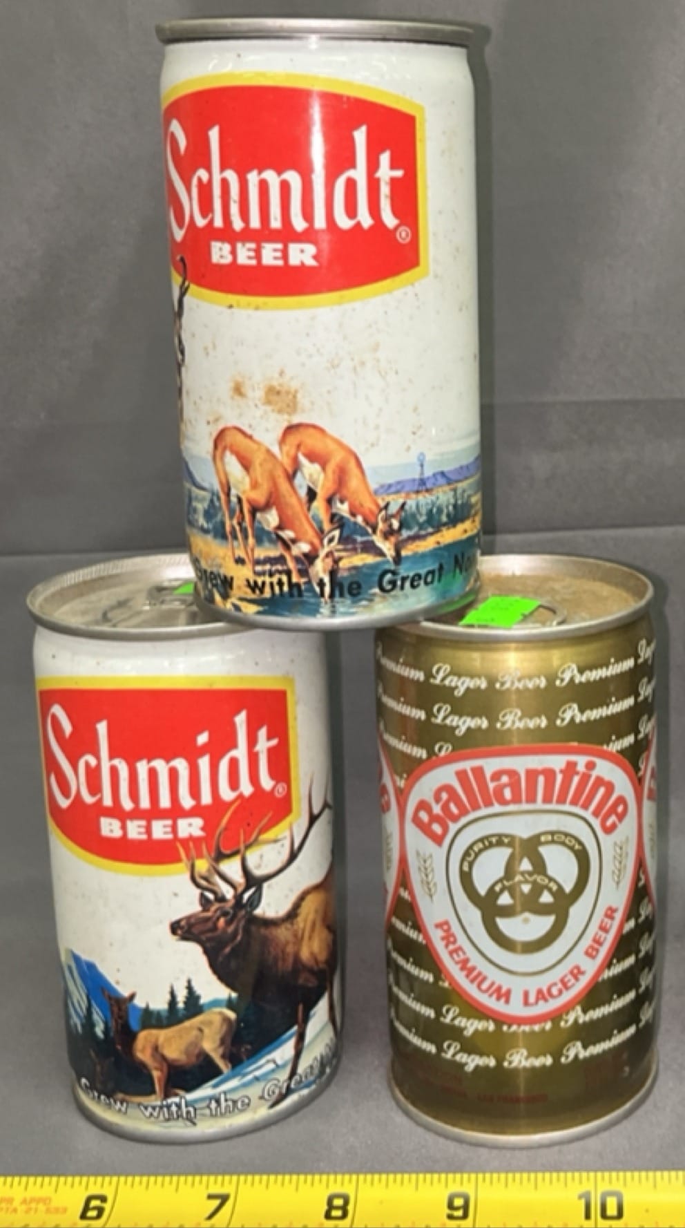 118 (2) Schmidt Beer Cans and Ballantine Beer Can - All Empty
