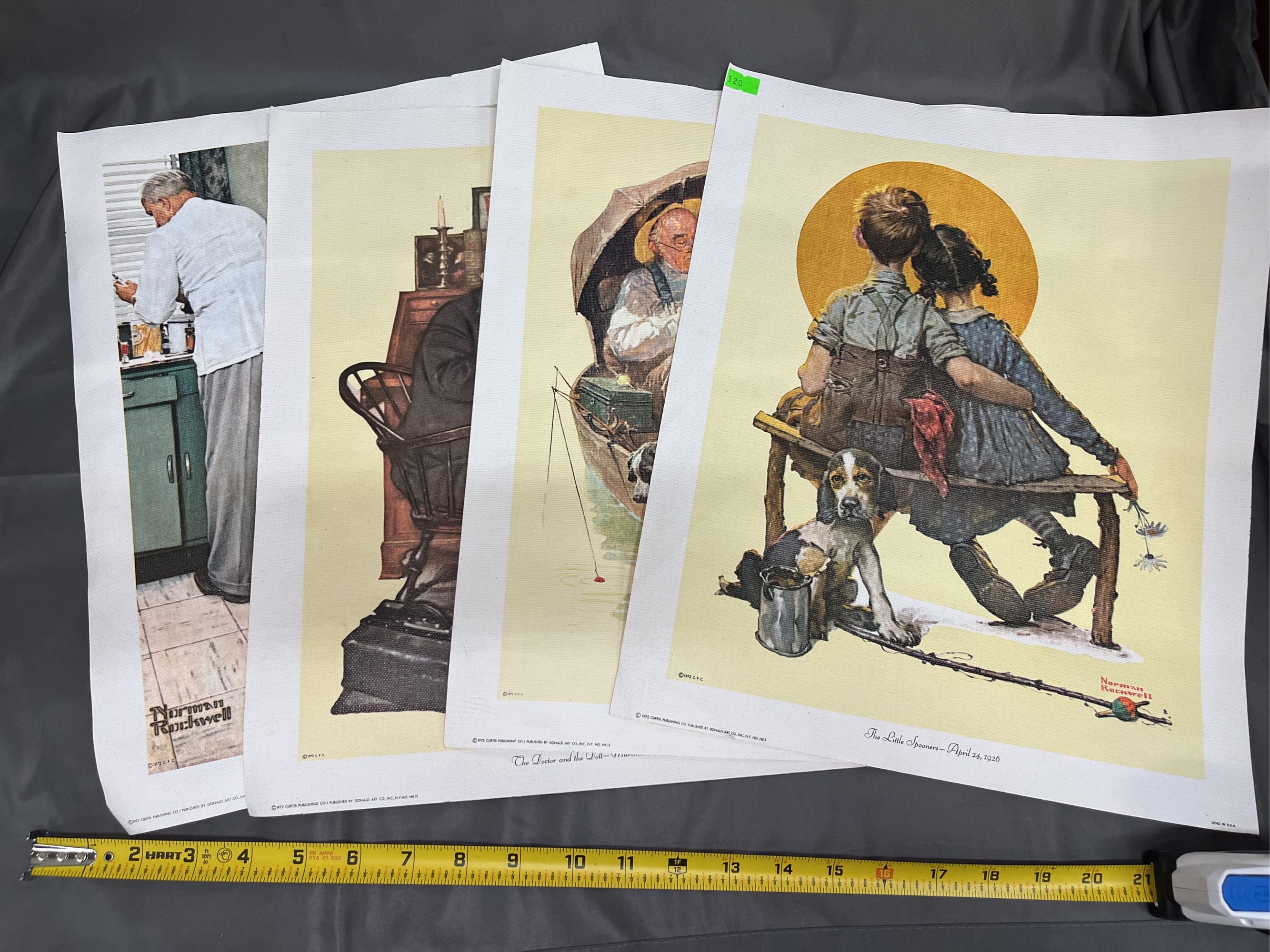 120 (4) 1972 Norman Rockwell Prints On Canvases Inc. "The Little Spooners," "The Doctor and The Doll," "Golden Days," & "At The Doctor's"13x16"