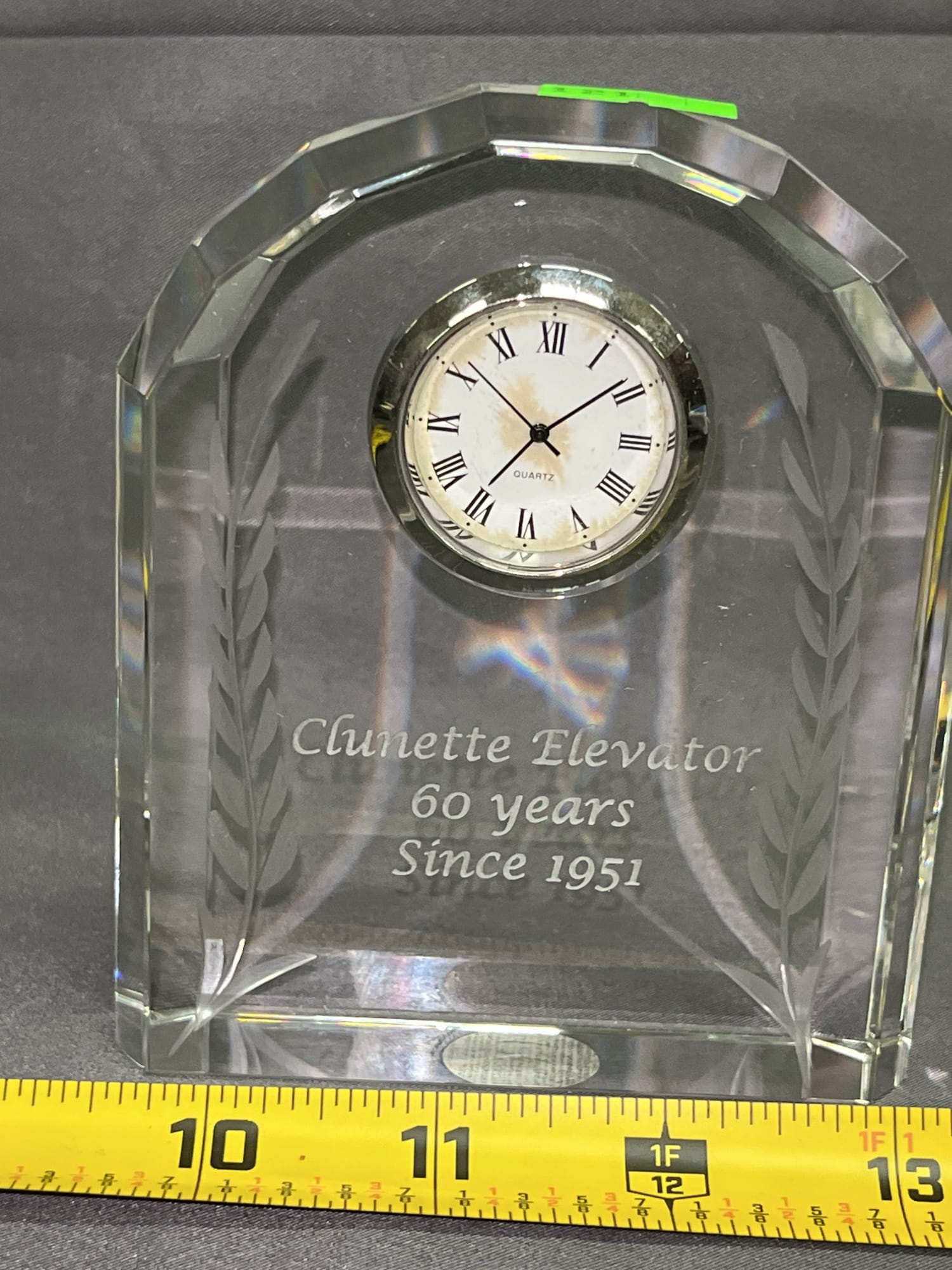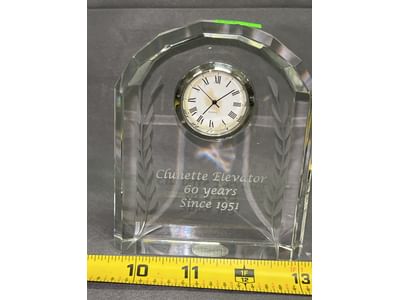 121 Warsaw Cut Glass Co. Clunette Elevator Service Award Clock - Warsaw, IND