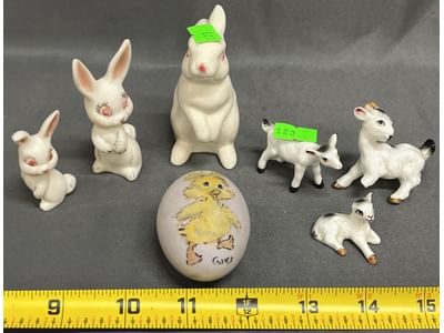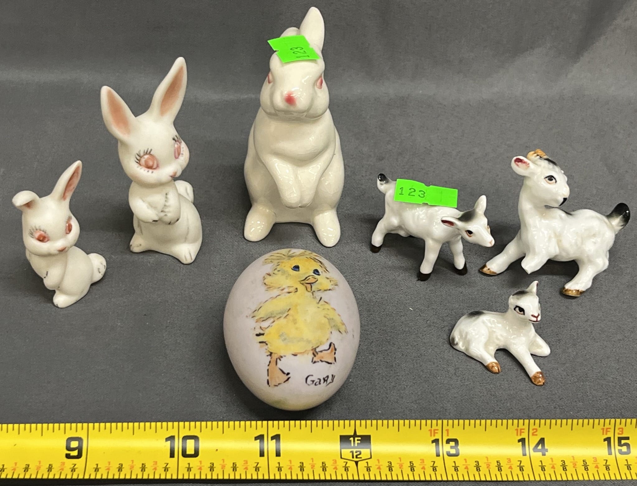123 Porcelain Rabbits and Goats - Some Damage, Chick Painted Egg Signed Fran anderson 1972