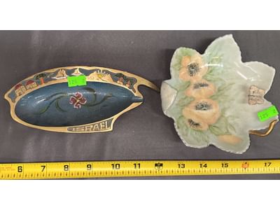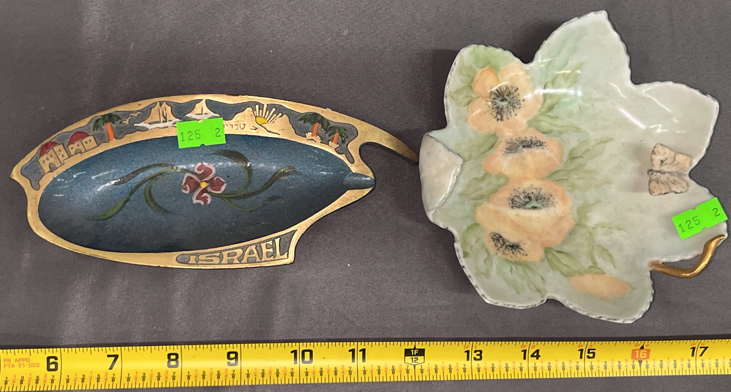 125 Israel Brass Dish and Porcelain Floral & Butterfly Dish