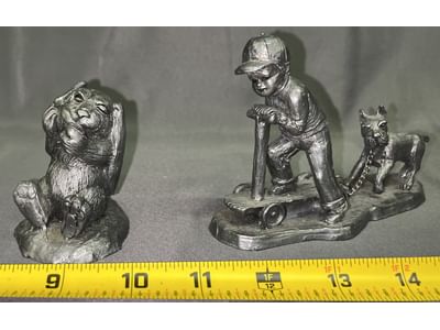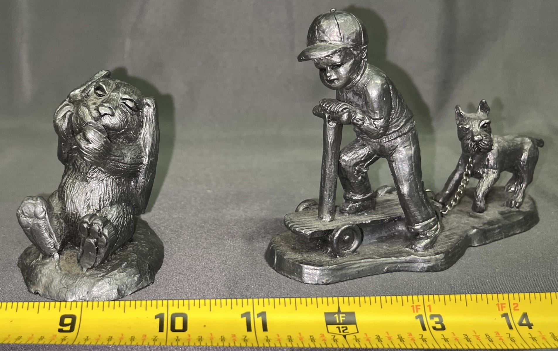 127 (2) Ricker-Bartlett Pewter Figurines Inc. 1984 Rabbit & 1985 Dog and Boy On Scooter