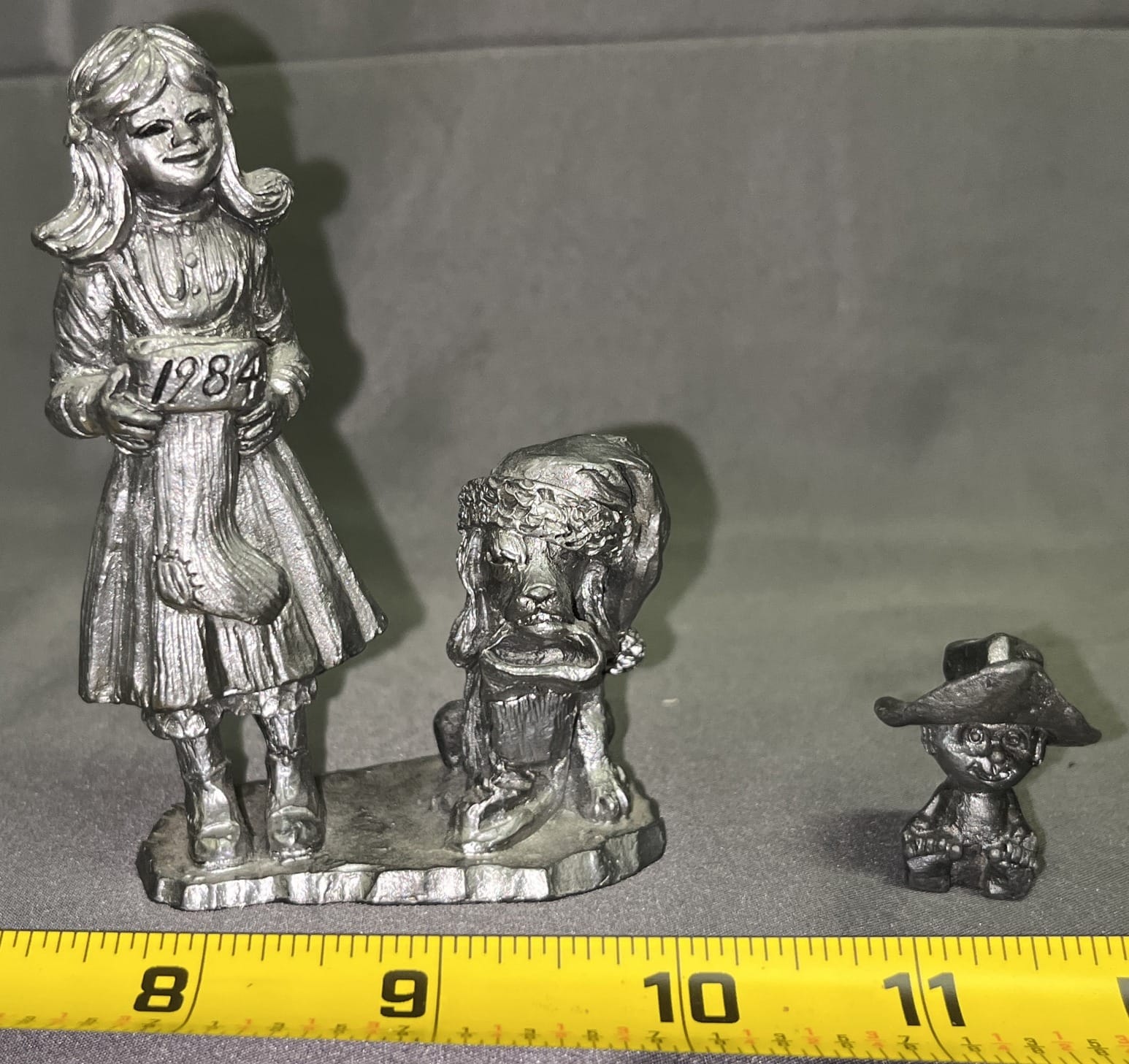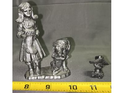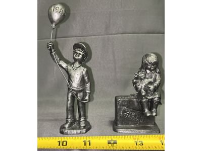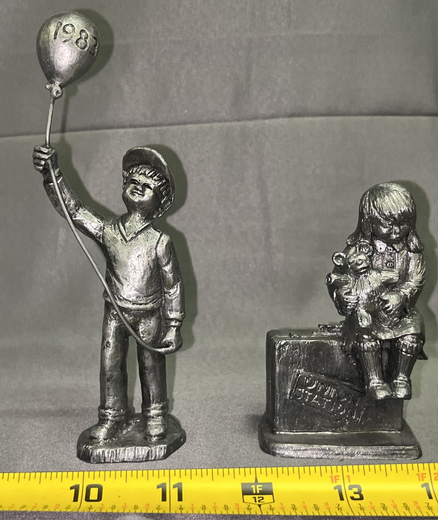 128 (2) Ricker-Bartlett Pewter Figurines Inc. 1984 Girl With Dog & Little Child