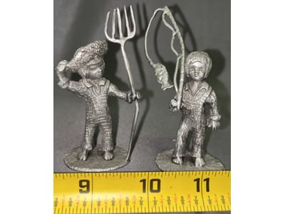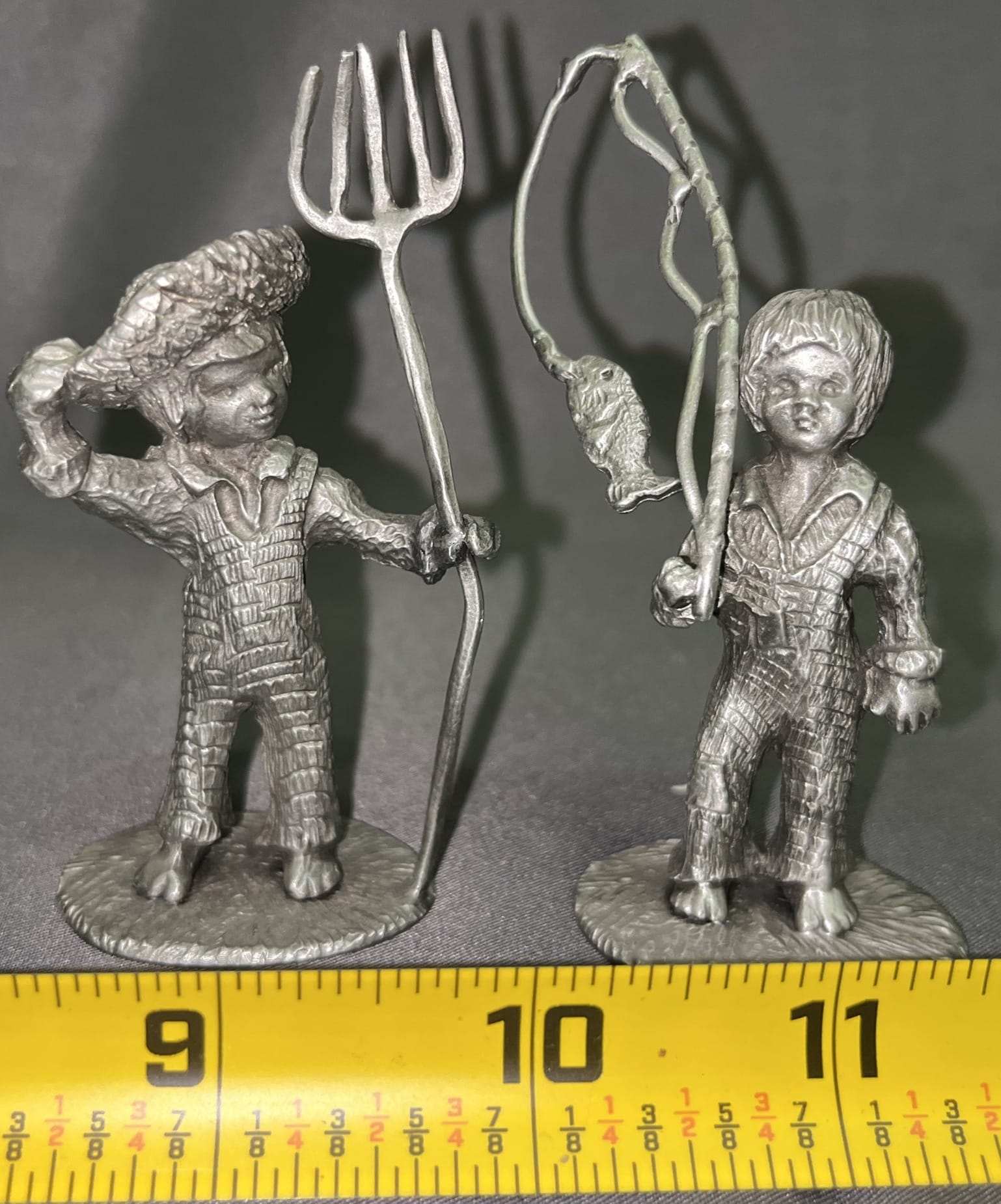 130 (2) Ricker-Bartlett Pewter Figurines Inc. Boy Pitchfork & Fishing Pole