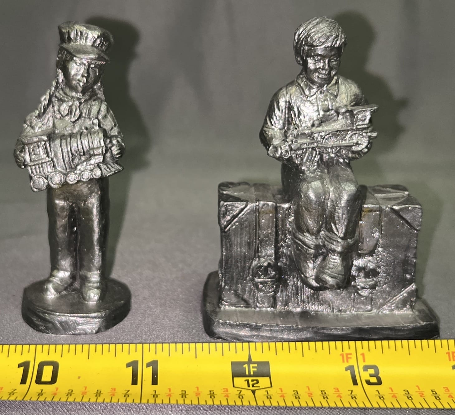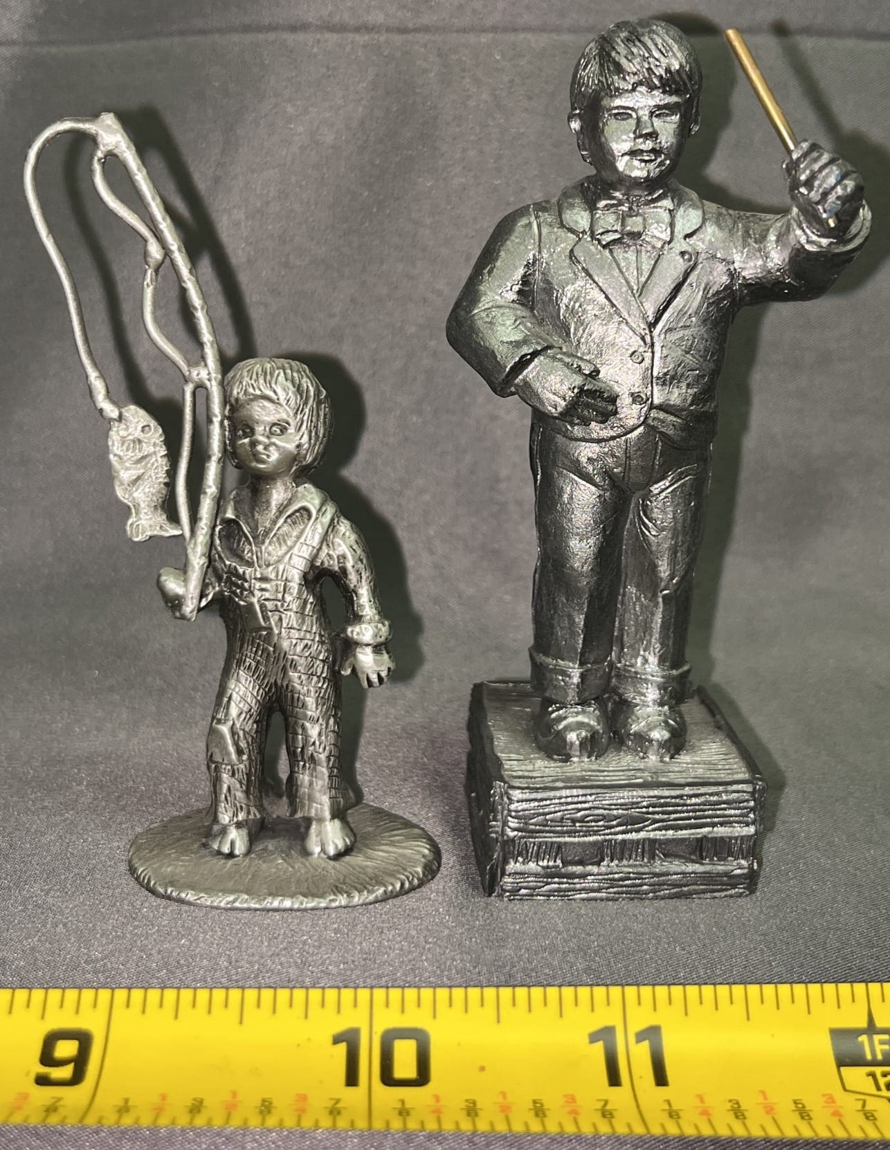 131 (2) Ricker-Bartlett Pewter Figurines Inc. Conductor & 1982 Boy With Fishing Pole