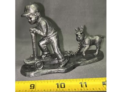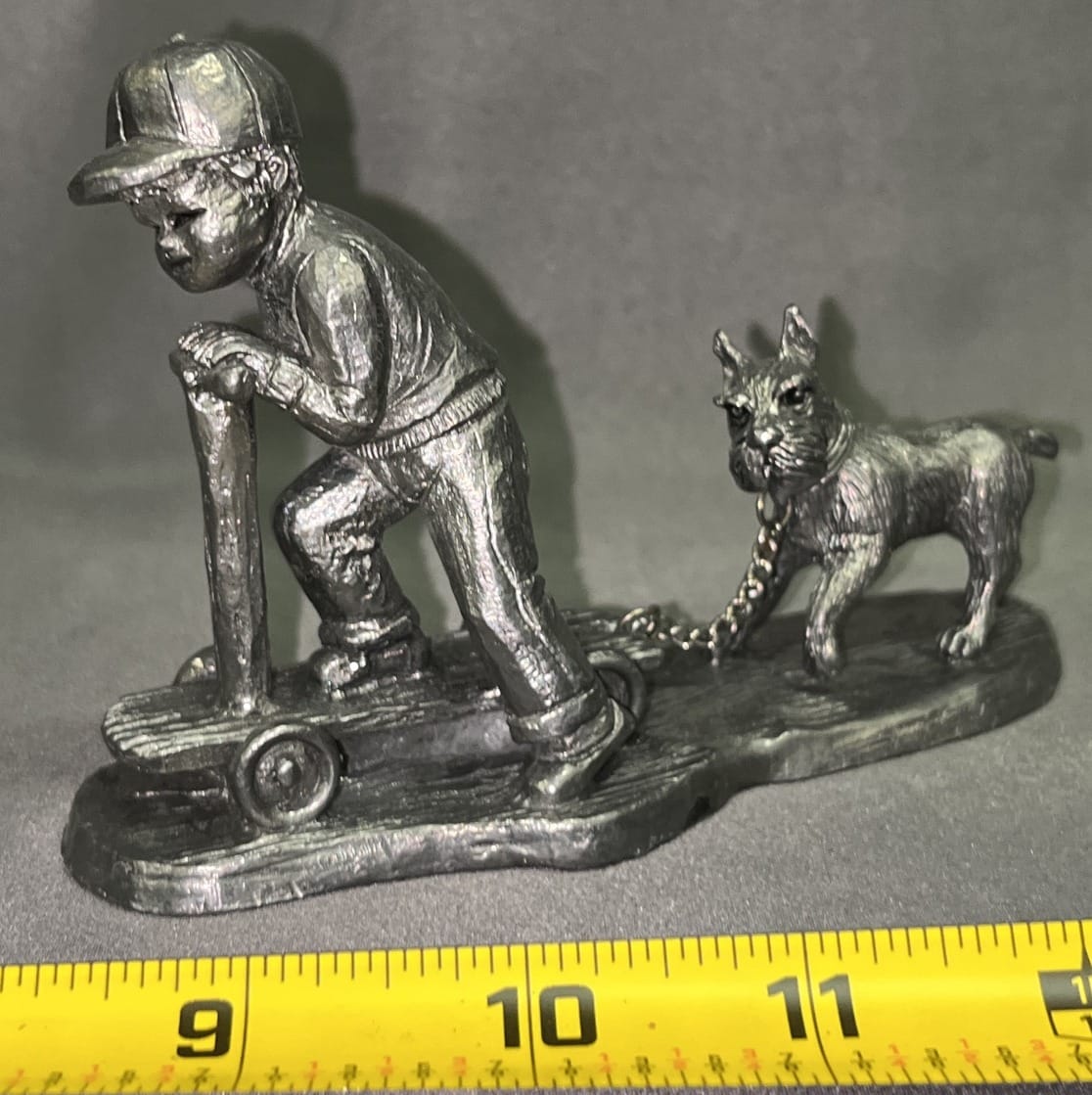 132 1985 Ricker-Bartlett Pewter Boy On Scoter With Dog Figurine