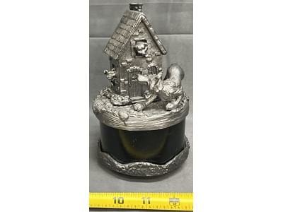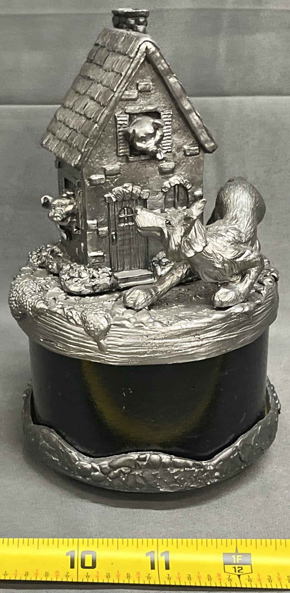 134 Ricker-Bartlett Rotating Pewter Music Box The Wolf and 3 Little Pigs 342/650