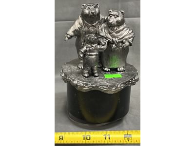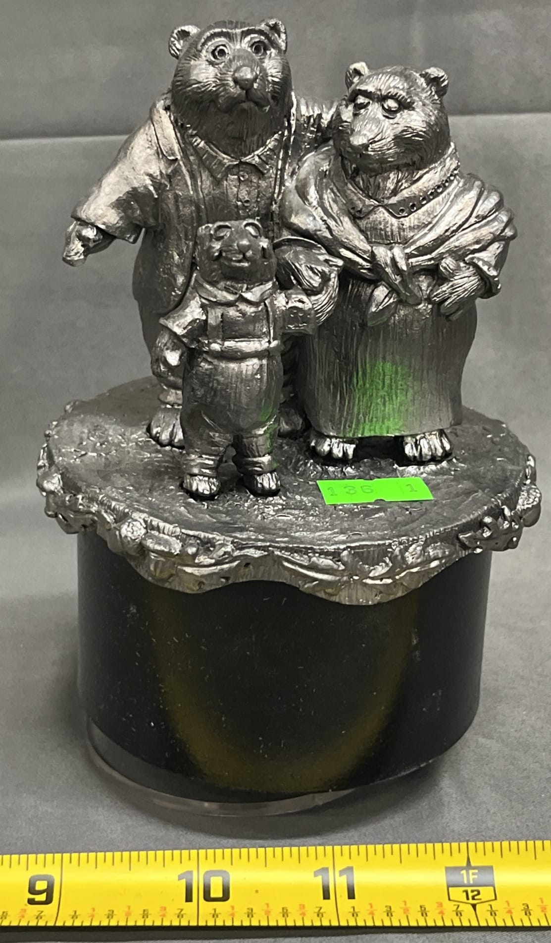 136 Ricker-Bartlett Rotating Pewter Music Box 3 Bears 532/2500