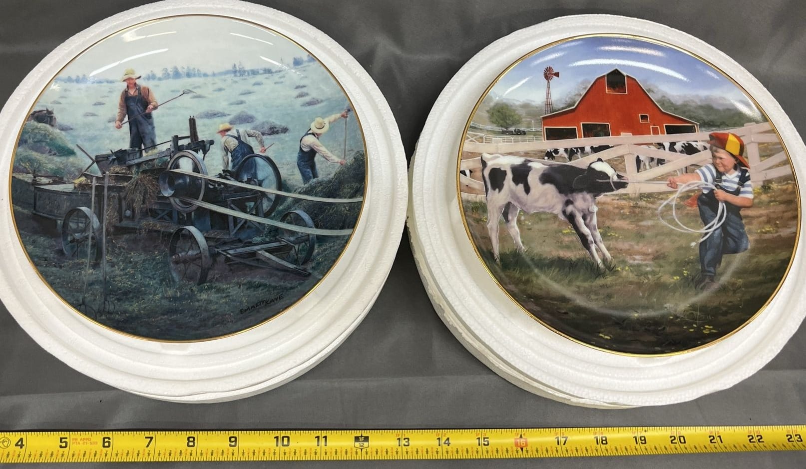 154 (2) Danbury Mint Collector Plates Inc. "Tug O' War" By Donald Zolan & "Baling Hay" By Emmett Kaye