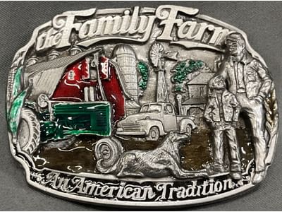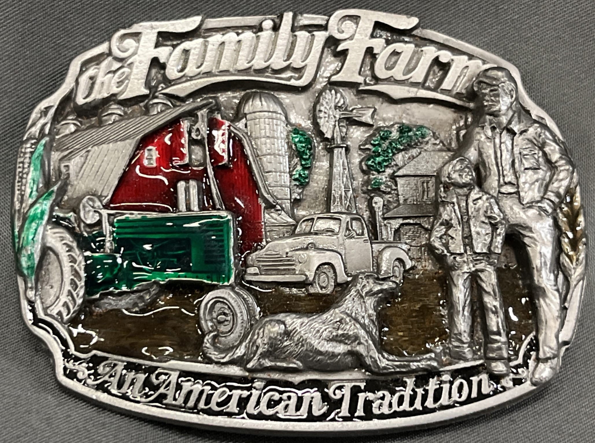 160 1986 Pewter CJ 1037 Family Farm An American Tradition Belt Buckle