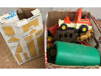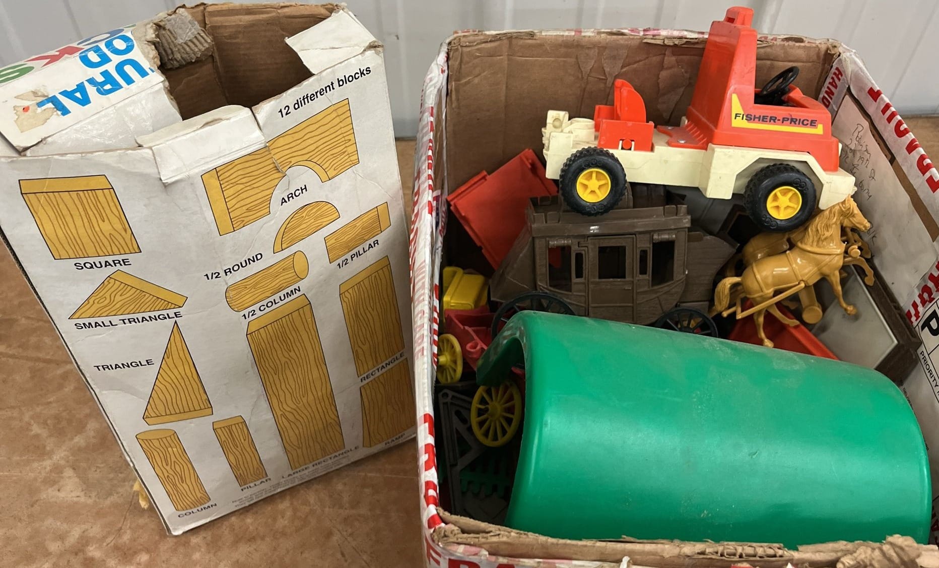 161 Toy Assortment, Wood Blocks, Plastic Fisher Price Truck, Misc.