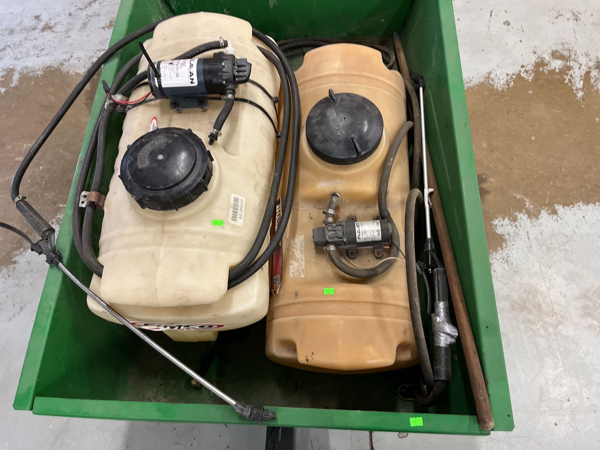 18 Fimco and Solar Poly Sprayer Tanks With 12v Pumps - YARD CART NOT INCLUDED