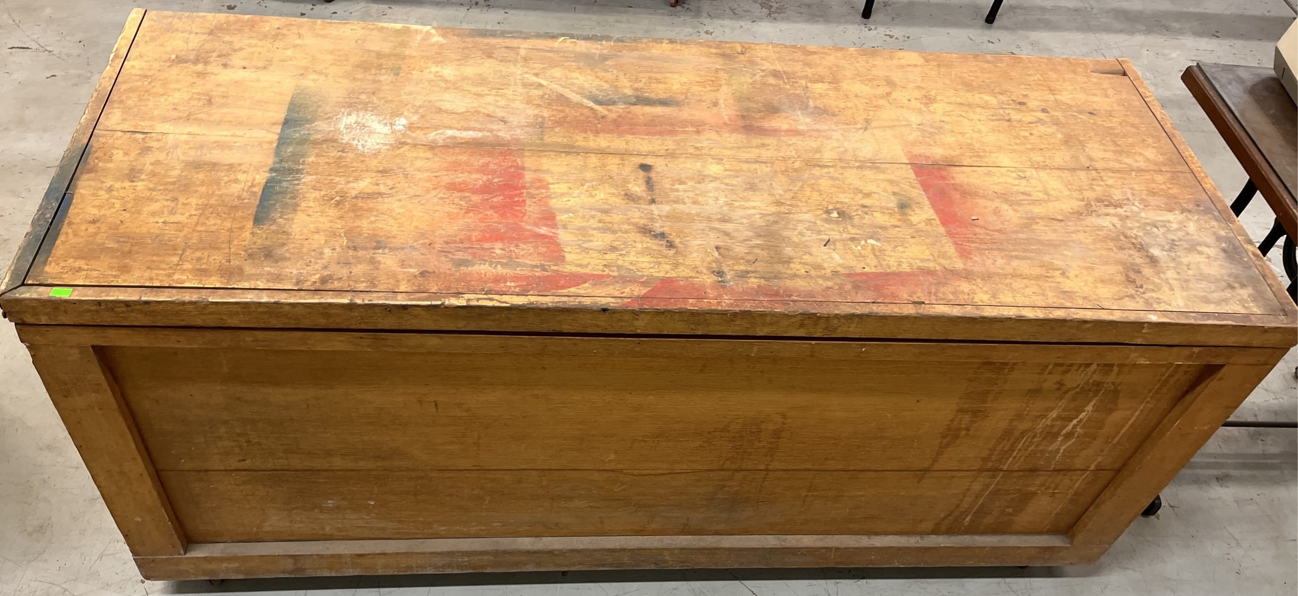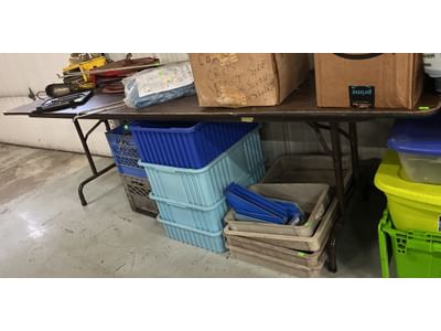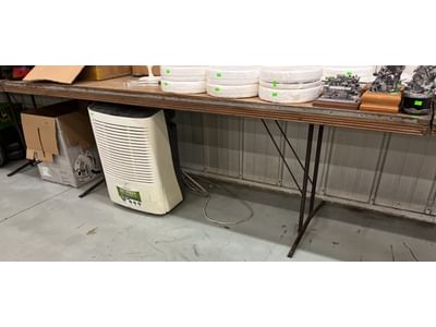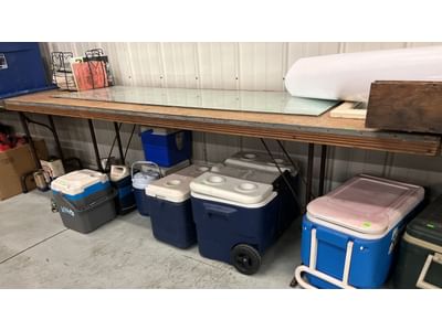 600 Wood Table - No Contents Included 8’x30” - PICK UP AT THE END OF LOAD OUT ONLY, BEING USED FOR AUCTION