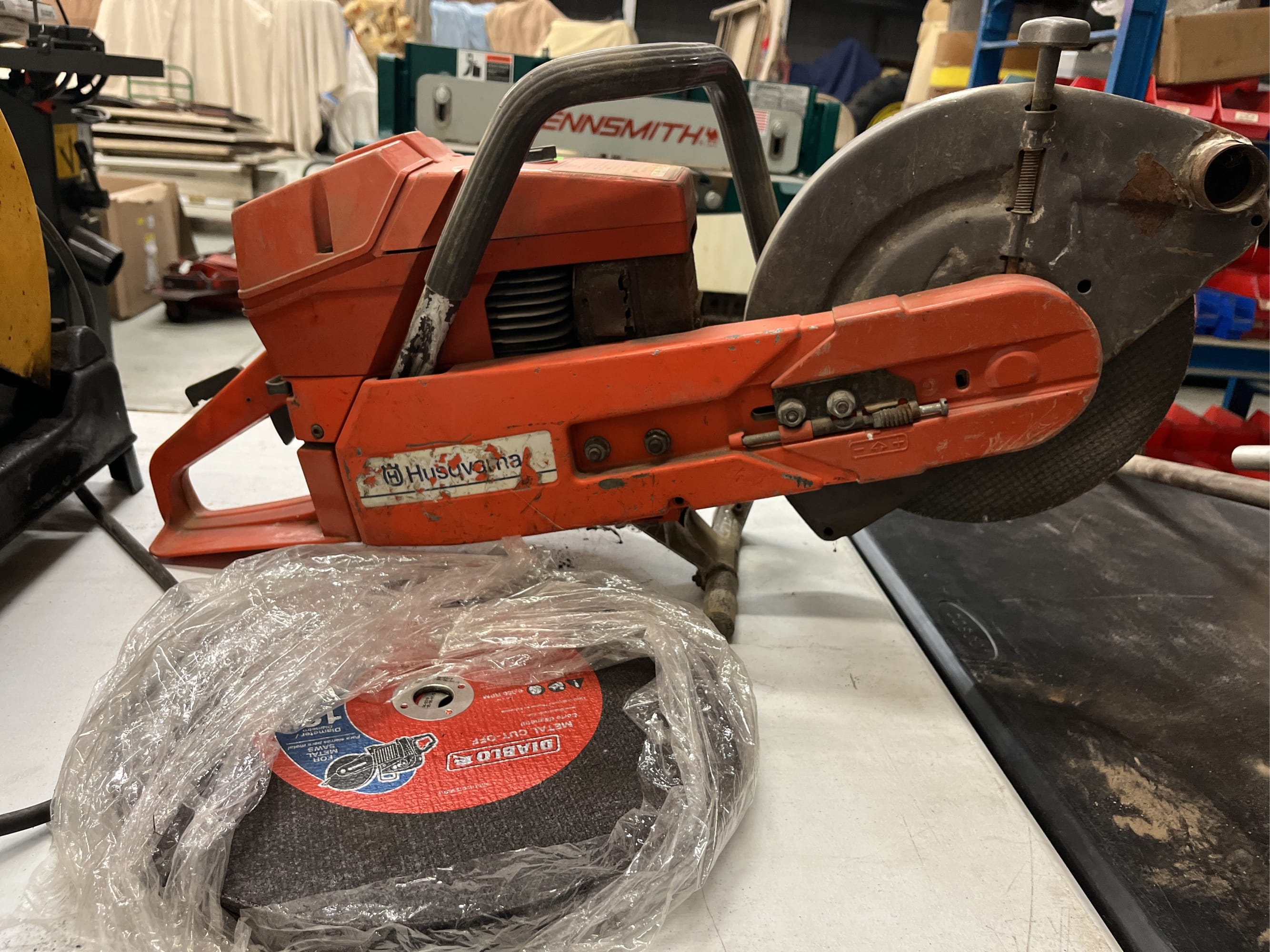 223 Husqvarna 268K Gas Powered Cut-Off Tool With 6 Blades, Serial # 636D159