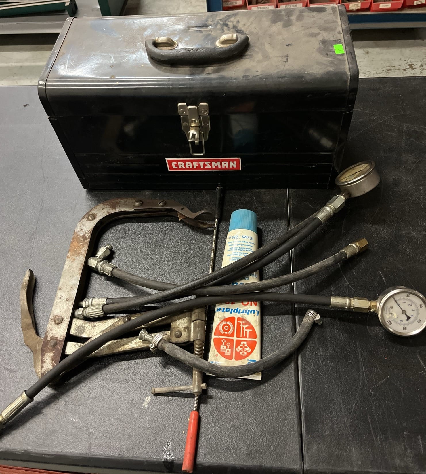 230 Craftsman Toolbox 18", Valve Compressor, Gauges, Clamp