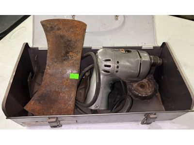 241 Double Bit Axe Head, Black & Decker 3/8 Deluxe Drill, Metal Box 14"