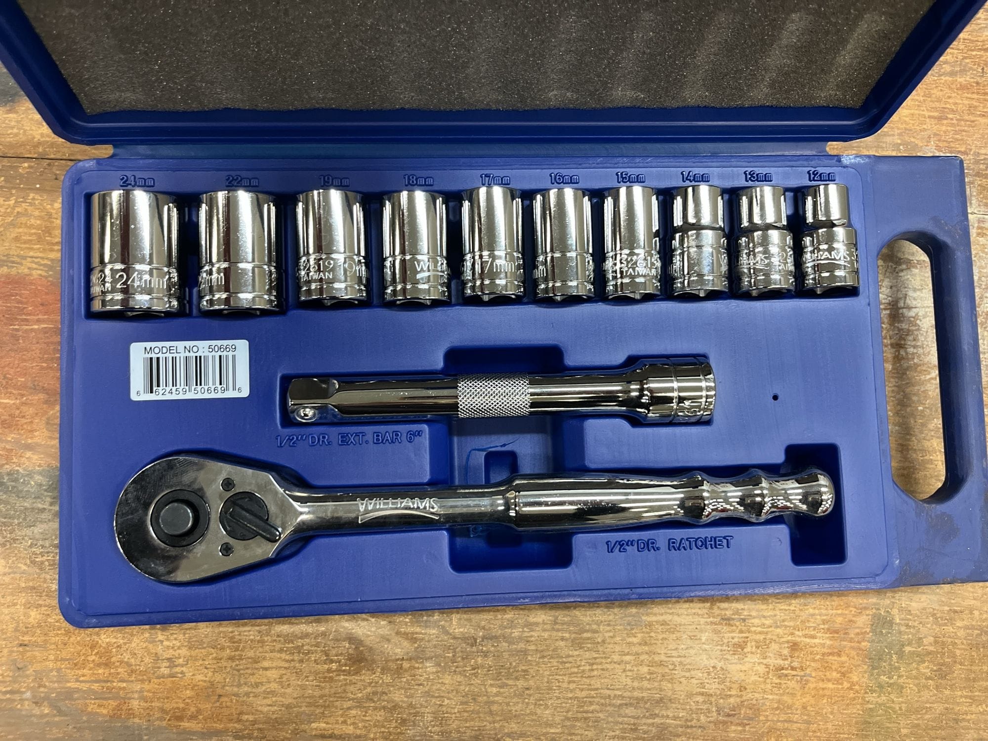 312 Williams 1/2" Socket Ratchet Set Metric In Case