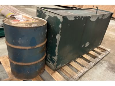 336 Parts Washing Cabinet 77x27x38" and 55 Gallon Drum Of Mineral Spirits - More Than Half Full